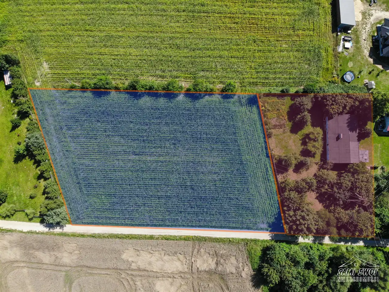 Do wyboru działka o powierzchni ok. 3970m² oraz działka z posadowionym budynkiem gospodarczym o powierzchni ok.1970m².