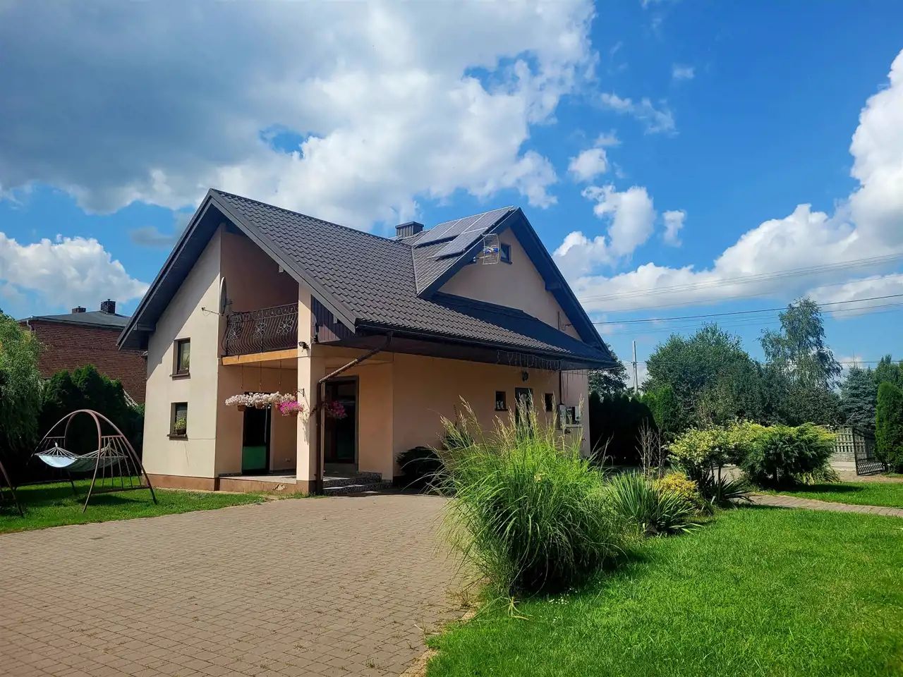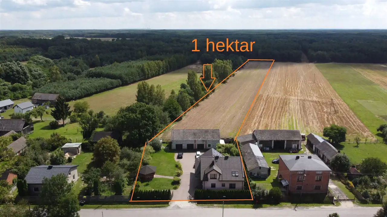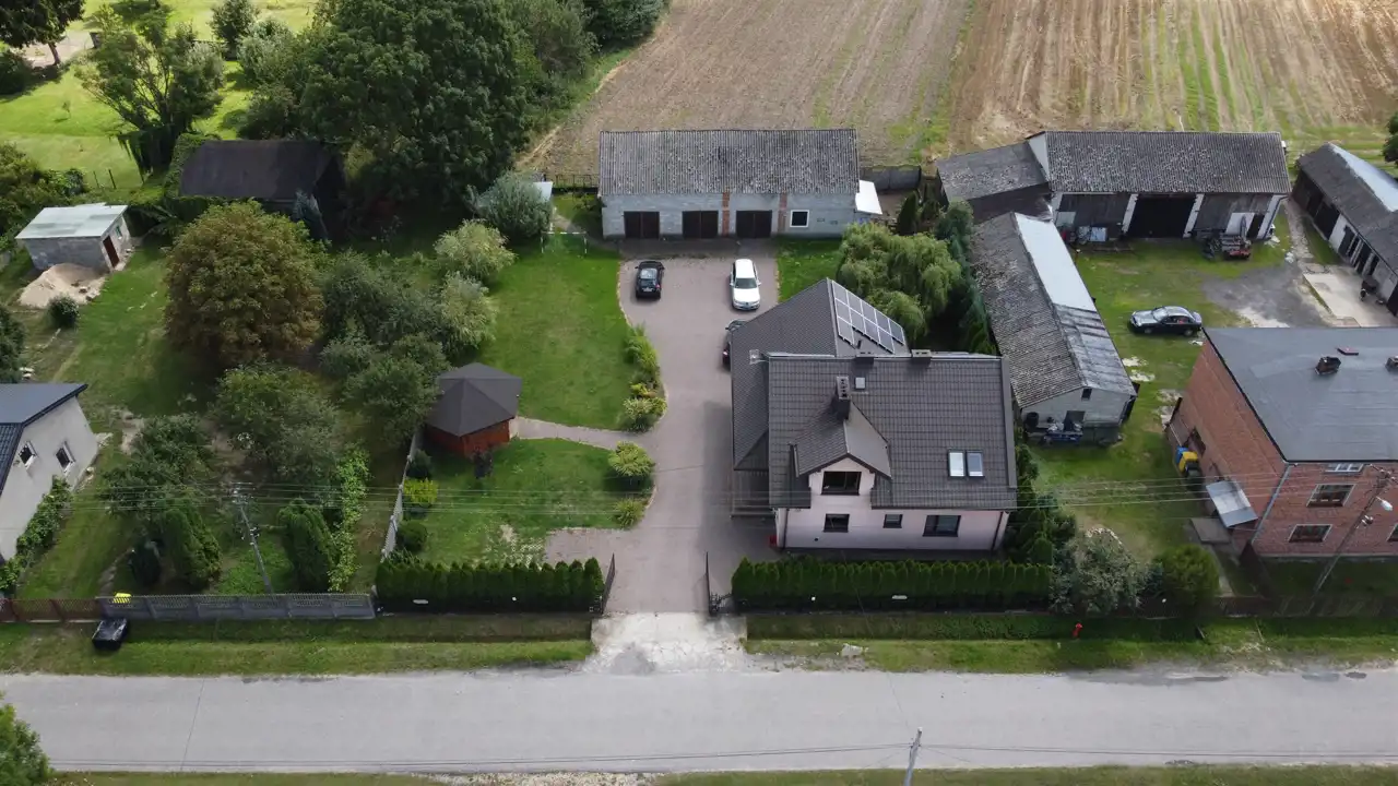 Działka częściowo ogrodzona z bramą metalową z reprezentacyjnym podjazdem. Dodatkowo na podwórku znajduje się wolnostojąca altanka , ogródek oraz stodoła murowana z lat 60-tych kryta eternitem.