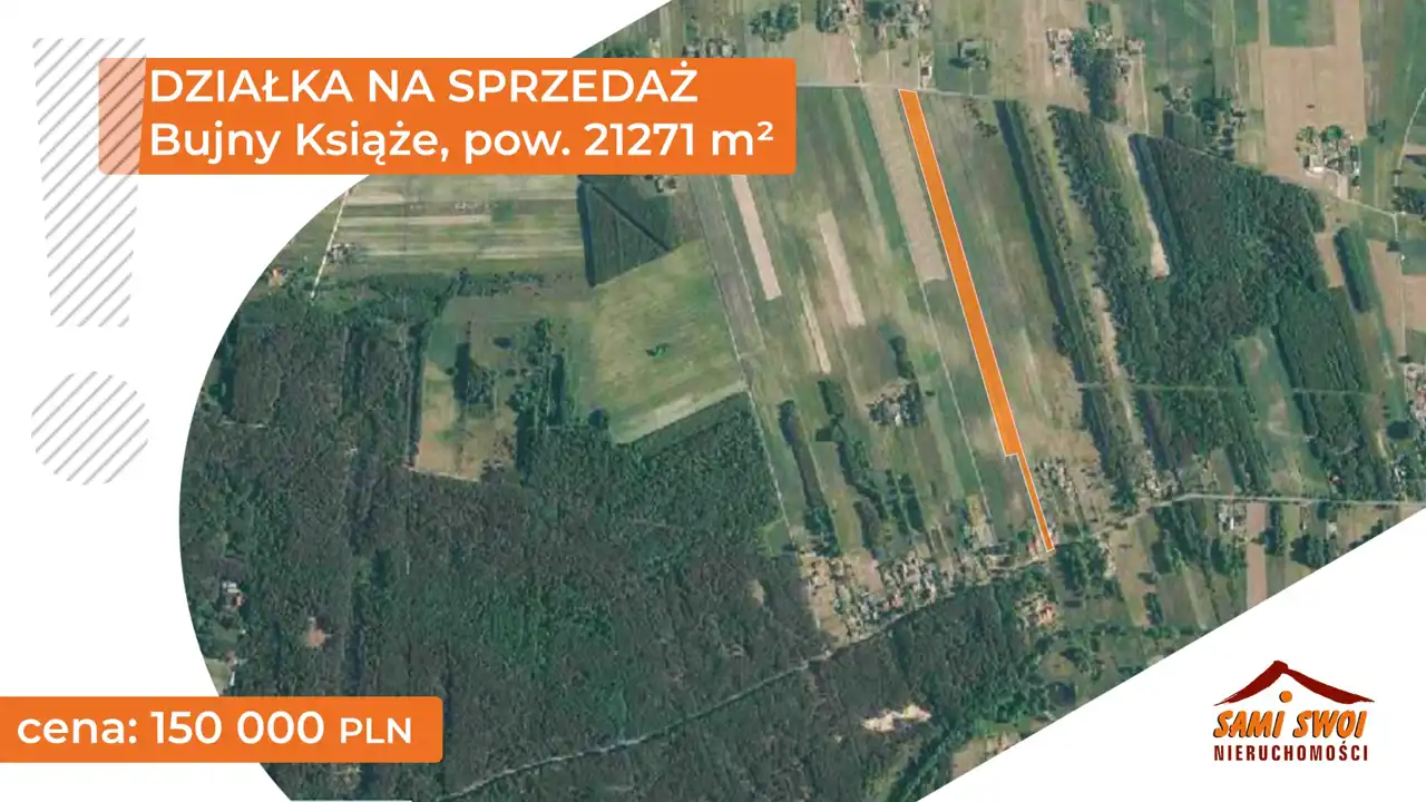 Na sprzedaż działka rolna o powierzchni 21271 m2 z możliwością podziału na mniejsze. Nieruchomość posiada dostęp do drogi z dwóch stron. Miejscowość Bujny Księże daje gwarancję spokoju i sielskiego uroku nowym nabywcom. Bliskie sąsiedztwo (około 3 km) kąpieliska oraz terenów rekreacyjnych jest niepodważalnym autem tej nieruchomości. Serdecznie zapraszamy na wycieczkę z naszym agentem, by poznać i zakochać się w tym cudownym miejscu.