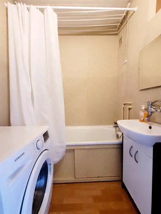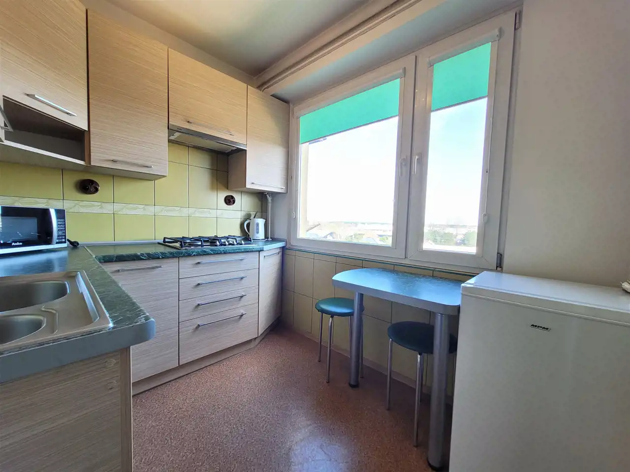 Mieszkanie o powierzchni 36m2 składa się z salonu, pokoju z balkonem, umeblowanej kuchni, łazienki z wanną, osobnego wc oraz korytarza.