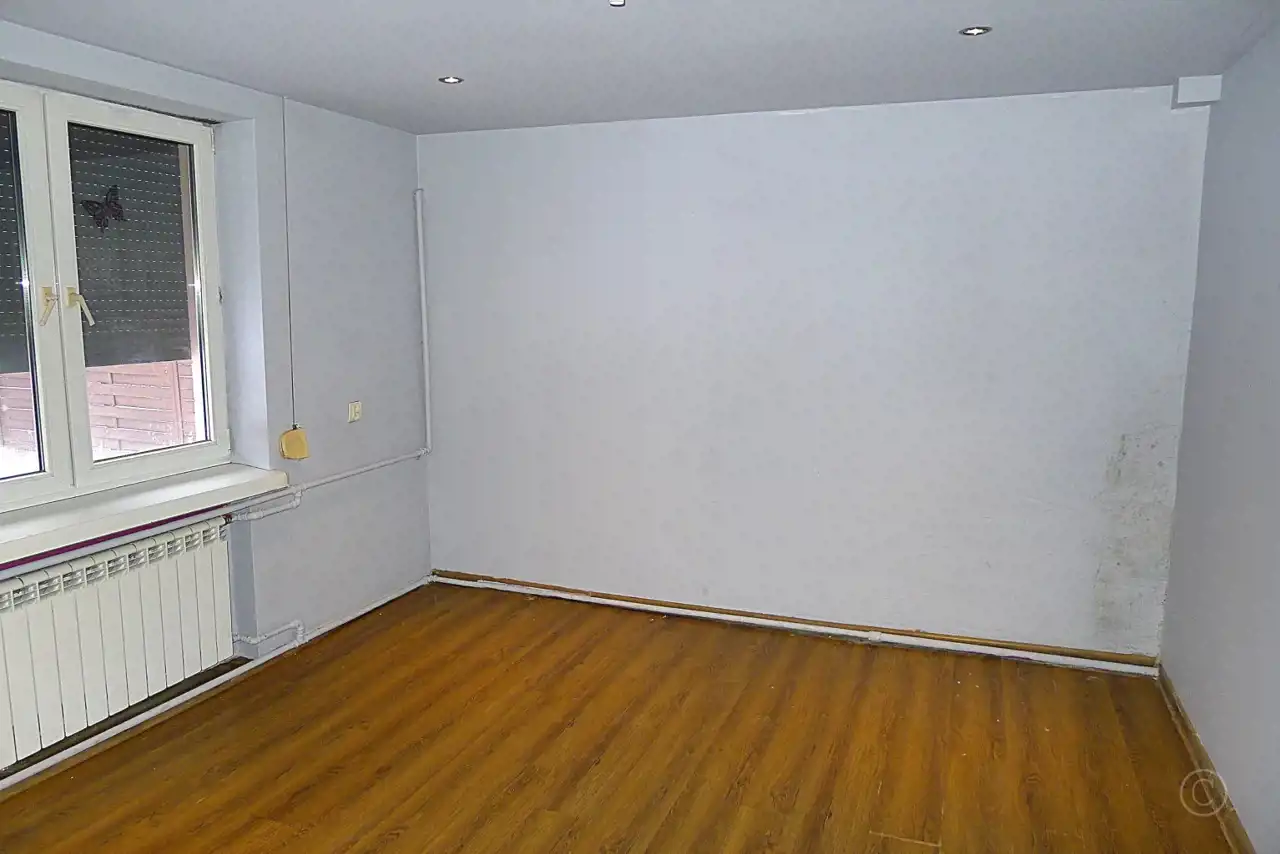 Dom o powierzchni około 54m 2 składa się z 3 pokoi: pokój dzienny- o pow. ok.19m2, pokój dzienny o pow. ok.12m2, sypialnia ok.8m2, kuchnia ok.7m2, łazienka z WC ok.3m2, przedpokój - ok.4m2. Wysokość pomieszczeń: 2,30m.