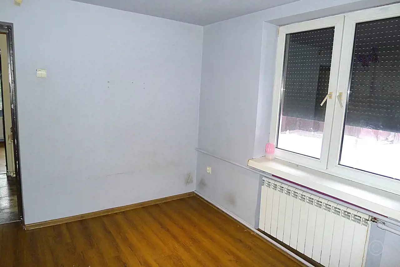 Lokal jest nieumeblowany, do odświeżenia. Kuchnia bez mebli i sprzętów AGD. Łazienka urządzona: kabina prysznicowa, umywalka, WC, okno.