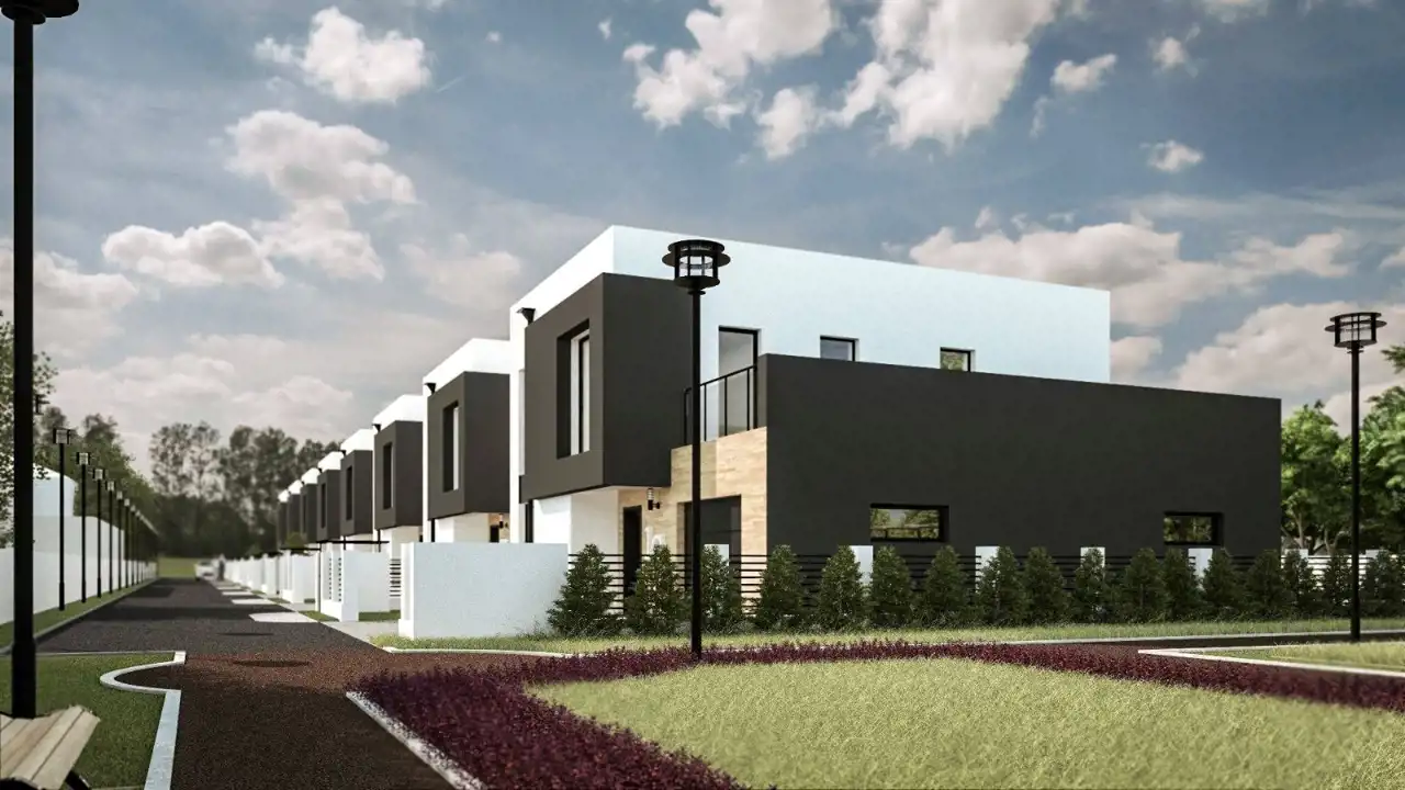 Aktualnie dla działki wykonano dokumentację projektową, a także wydano pozwolenie na budowę mini osiedle w zabudowie szeregowej - 9 nowoczesnych, bryłowych budynków, każdy z tarasem i garażem.