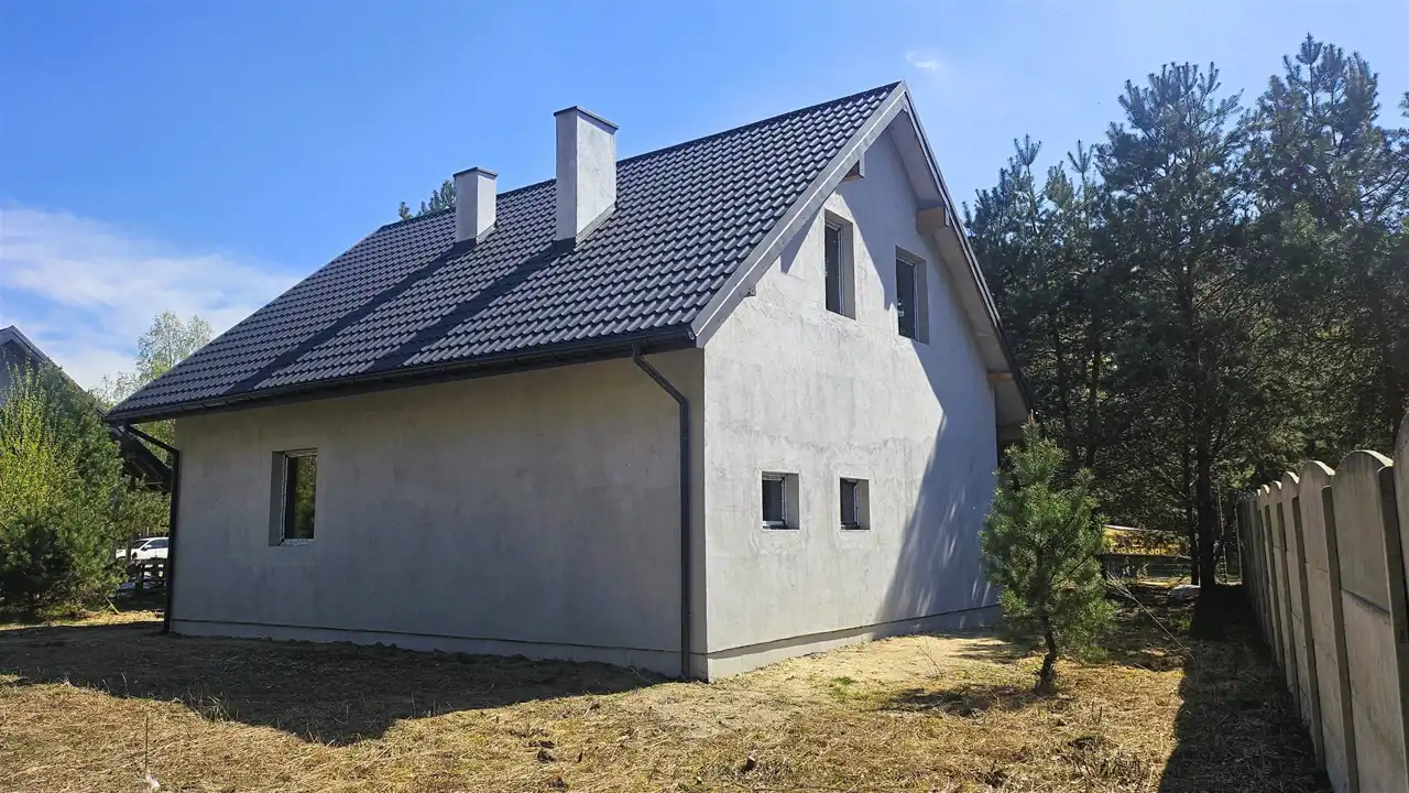 Media: Przyłącze elektryczne, woda z własnej studni, szambo bezodpływowe. Dom z ocieplonymi i otynkowanymi ścianami zewnętrznymi. Dach pokryty blachodachówką.