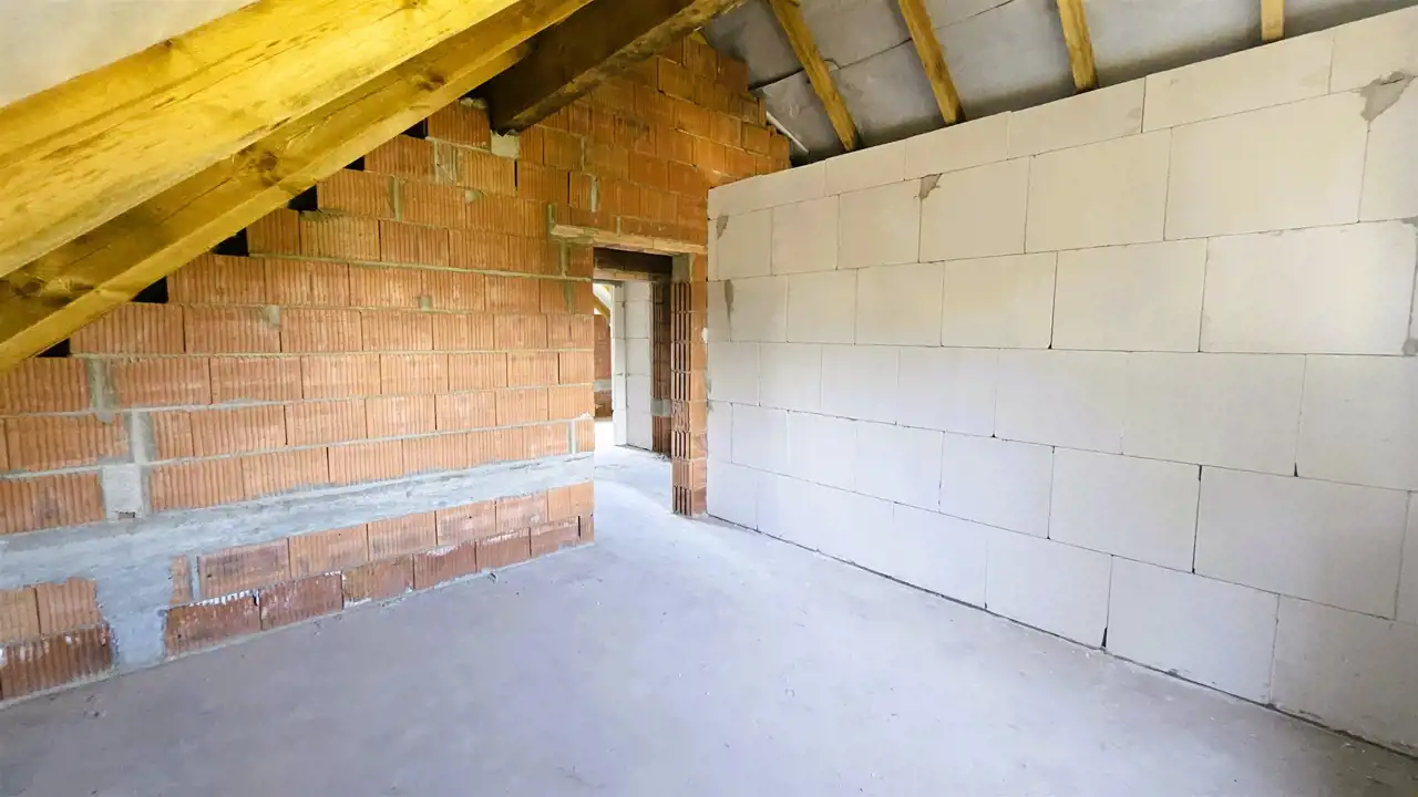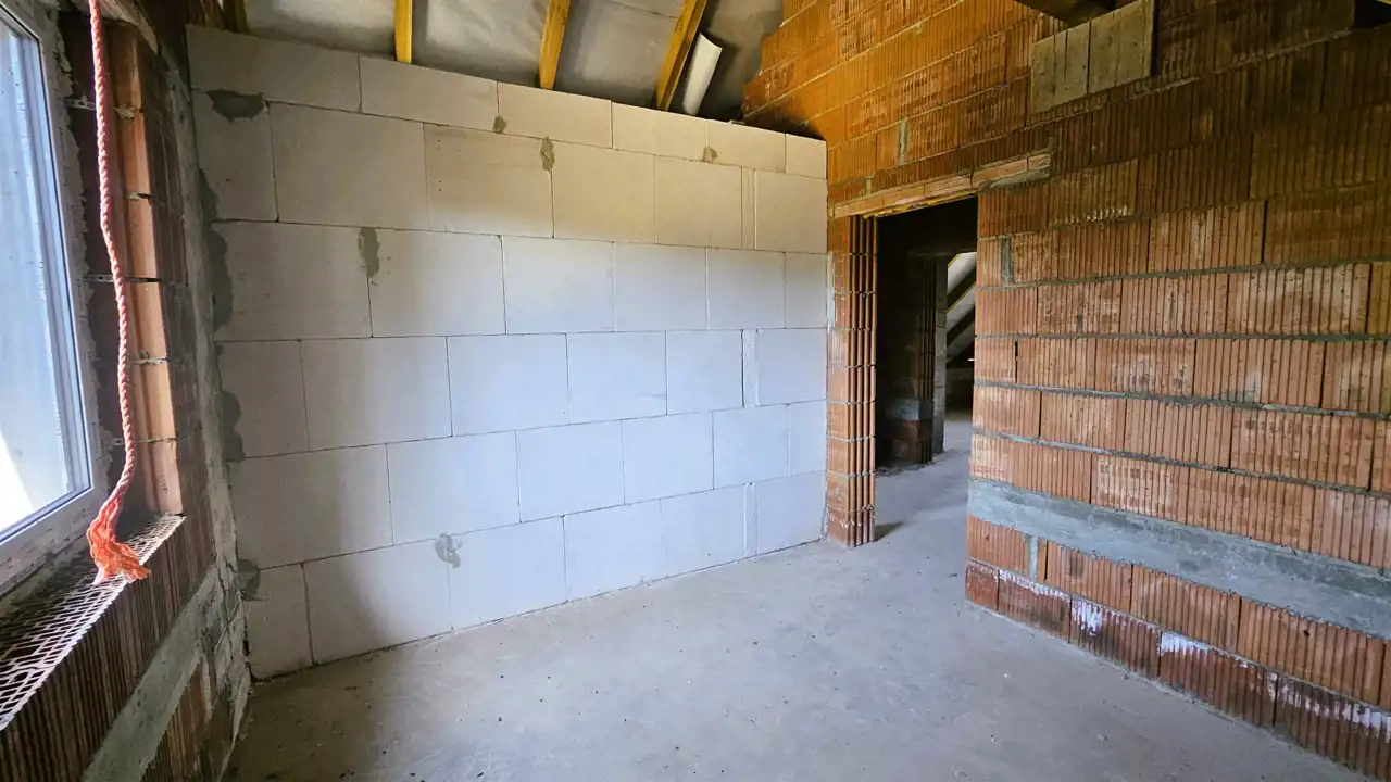 Stan surowy zamknięty o pow. użytkowej 101 m2, położony w miejscowości Jasionka pomiędzy Sokolnikami a Dzierżązna, w spokojnej i cichej okolicy, na powstającym mini osiedlu. Budynek wybudowany z cegły typu max, ścianki działowe z bloczków gazobeton, okna PCV 3 szybowe, 5 komorowe, drzwi antywłamaniowe.