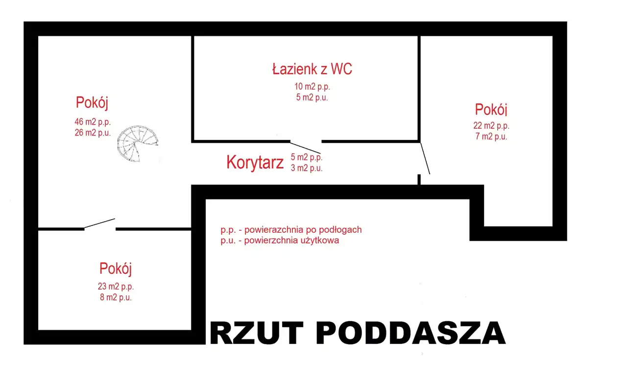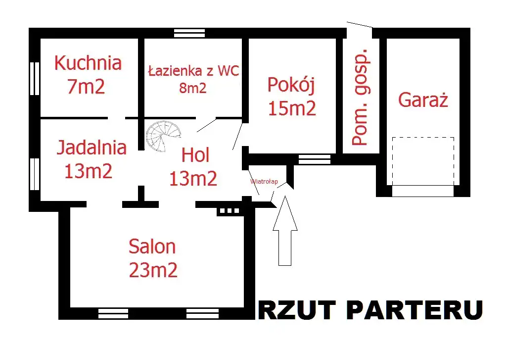 - hol łączący wszystkie pomieszczenia, ze schodami na piętro o pow. ok. 13 m2;