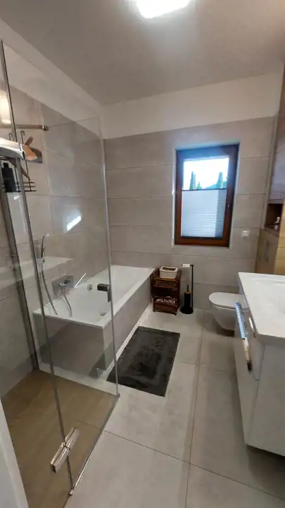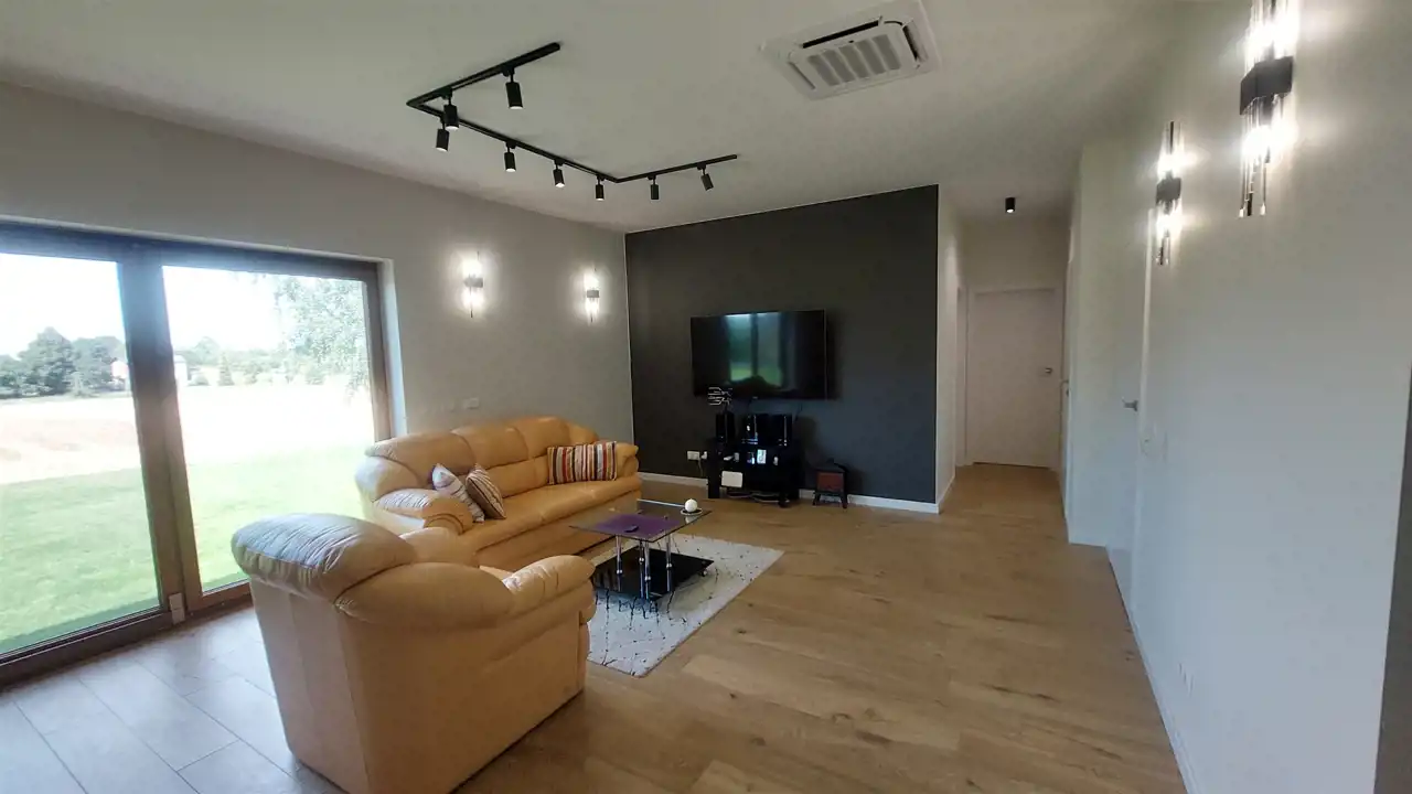 Dom budowany przez osobę prywatną „dla siebie” z bardzo dobrych materiałów min cegła ceramiczna (szlifowana) Porotherm, dach dwuspadowy kryty dachówką ceramiczną, okna trzyszybowe w kolorze orzechowym z roletami. Wysoka jakość wykończenia wewnątrz min: na całości ogrzewanie podłogowe, gres hiszpański na podłodze, tynki knauf + gładź, farby firmy Flugger, drzwi bezprzylgowe, klimatyzacja, ocieplenie poddasza wełną knauf 30cm itp., w łazience włoska glazura, armatura Kludi, kotłownia – piec gazowy dwufunkcyjny.