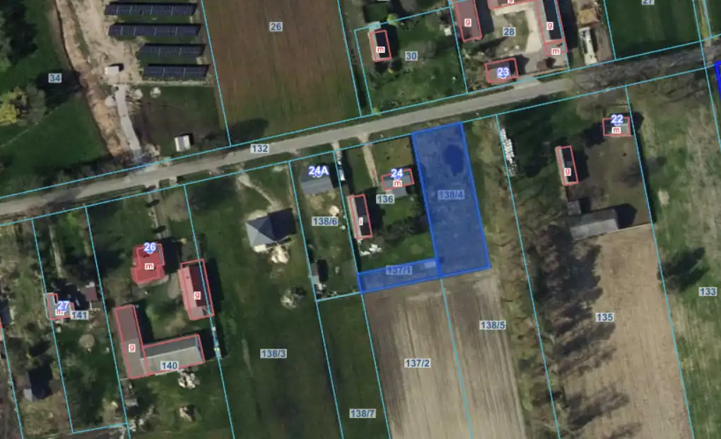 Nieruchomość składa się z dwóch działek, pierwsza o wymiarach 22 m x 65 m oraz dodatkowej mniejszej o wymiarach 8 m x 36 m.