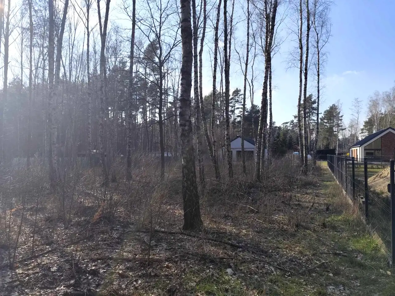 Teren nieruchomości jest niezagospodarowany i porośnięty drzewami co powoduję, że działka nabiera leśnego klimatu.