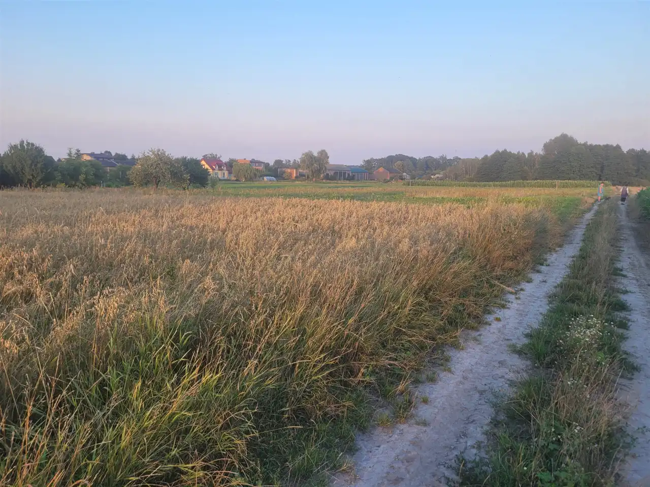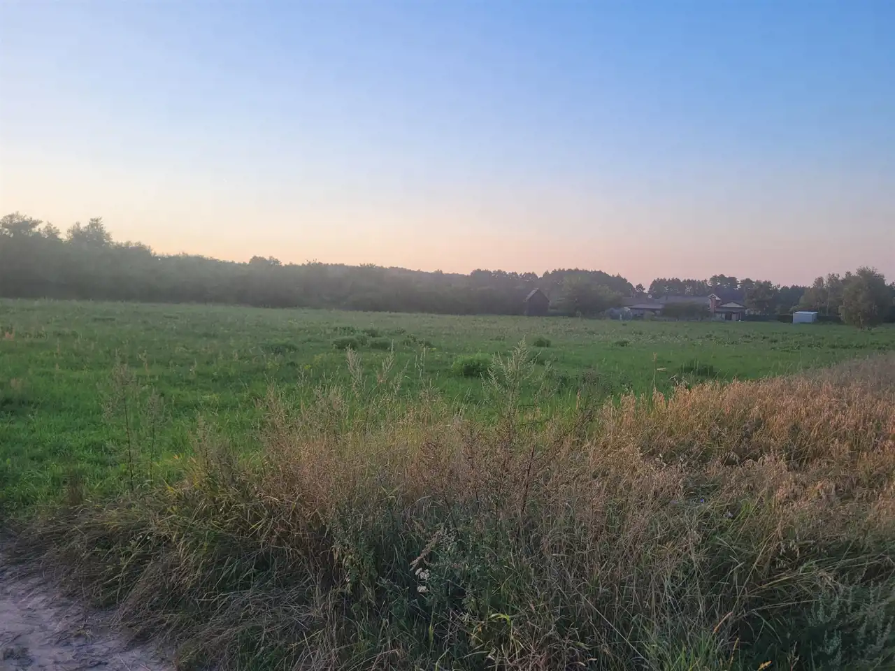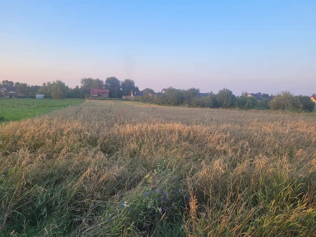 Po sąsiedzku domy oraz łąki i las.