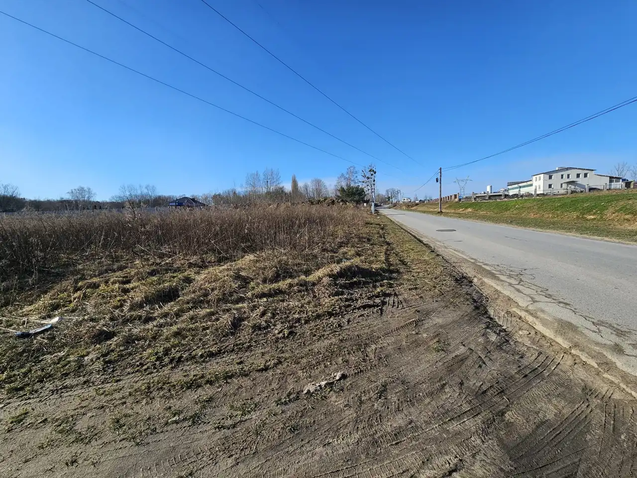Teren płaski z bezpośrednim dostępem do drogi asfaltowej.