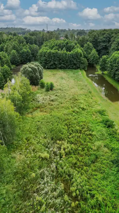 Działka (nr. 507/4) z własnym laskiem, stawem oraz z dostępem do rzeki, położona w bardzo spokojnej i zielonej miejscowości gdzie w zaledwie 5 minut dojedziemy do miejscowości - Zgierz a dojazd do centrum Łodzi zajmie nam około 20 minut!