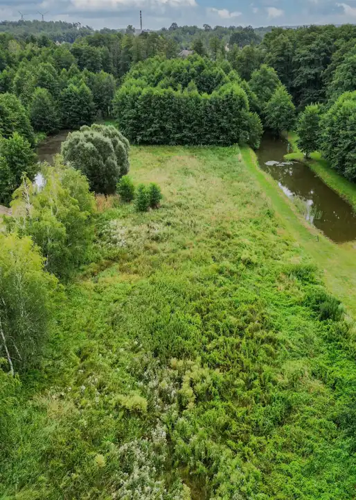 Działka (nr. 507/4) z własnym laskiem, stawem oraz z dostępem do rzeki, położona w bardzo spokojnej i zielonej miejscowości gdzie w zaledwie 5 minut dojedziemy do miejscowości - Zgierz a dojazd do centrum Łodzi zajmie nam około 20 minut!