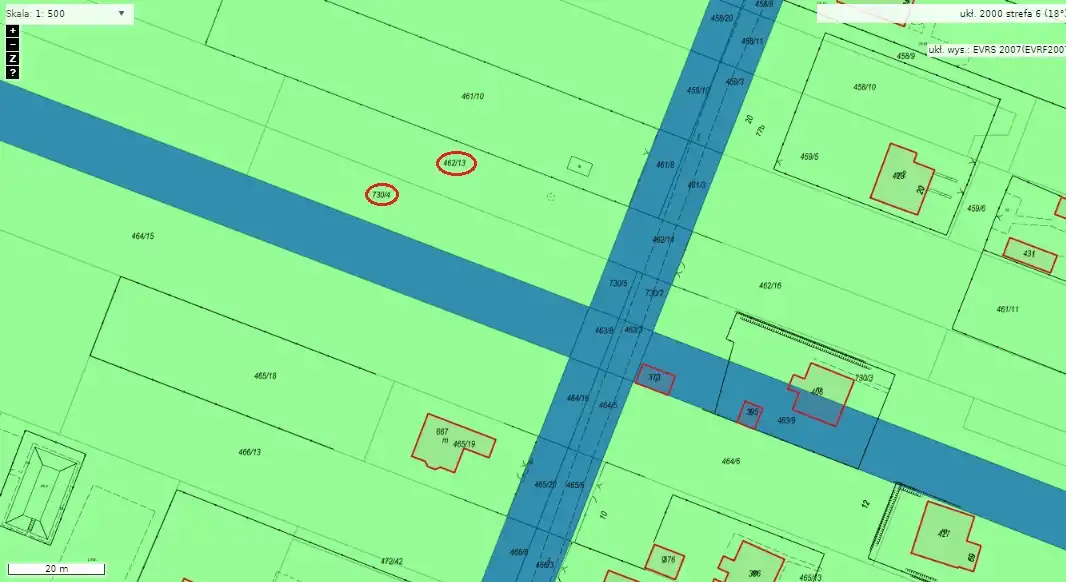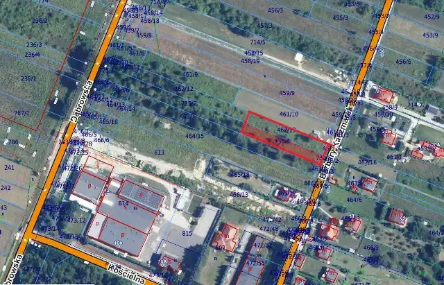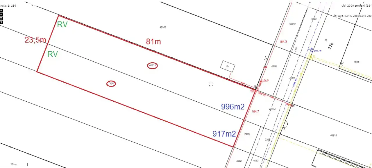 Działka o pow. 1913 m2, w kształcie prostokąta o wymiarach 24 x 81 m. Działka częściowo ogrodzona.