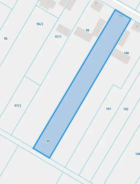 Działka o powierzchni 2812 m2 ,w kształcie prostokąta , szerokość frontu to ok. 19 m.