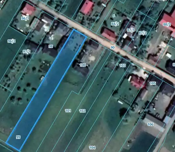 - Działka częściowo zagospodarowana, lekko nachylona, prostokąt