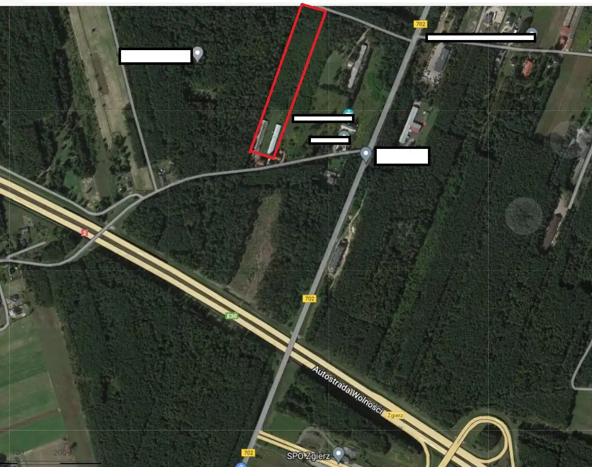 Istnieje możliwość dokupienia sąsiedniej działki o powierzchni 12 493m2 celem powiększenia terenu. Wtedy łączna powierzchnia działki wynosiłaby 30 956m2, a wjazd na działkę miałby szerokość 95,5m.