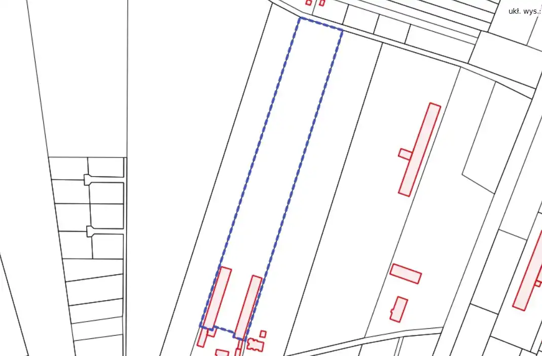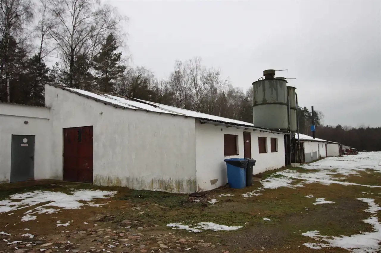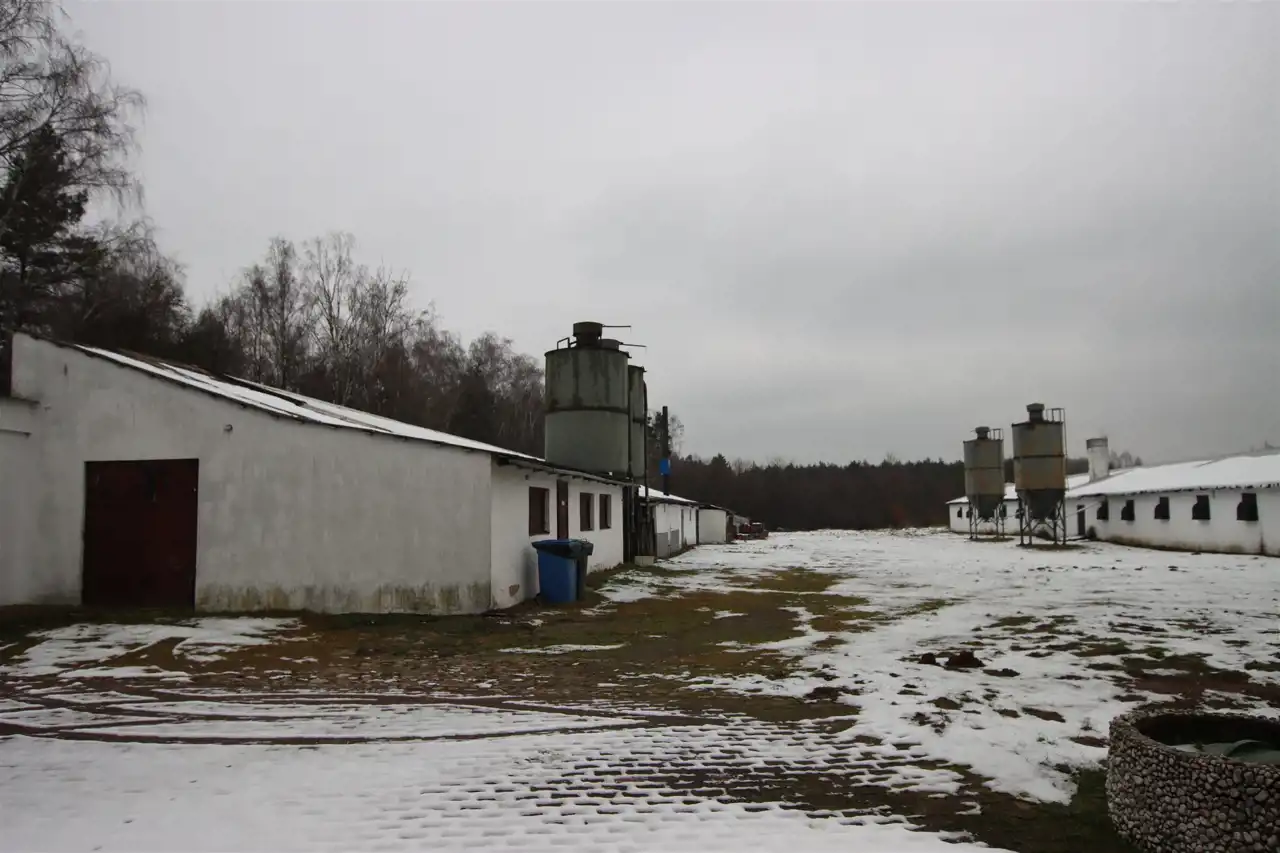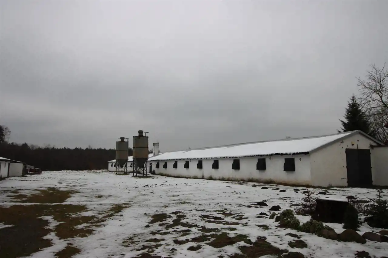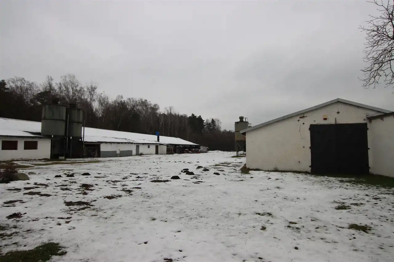 Działka o powierzchni 18 463m2 jest w kształcie zbliżonym do prostokąta o wymiarach: 48m x 362m. Zlokalizowana bezpośrednio przy gminnej drodze gruntowej, w której znajdują się media: woda, prąd. Istnieje konieczność utworzenia bramy wjazdowej bezpośrednio z drogi dojazdowej oraz ogrodzenia nieruchomości. Na końcu działki położone równolegle do siebie znajdują się dwa budynki produkcyjne w kształcie prostokąta - jeden z nich wybudowany w 1976r. o powierzchni 777m2 i wymiarach 70m x 11m, natomiast drugi wybudowany w 1990r. o powierzchni 792m2 i wymiarach: 72m x 11m. Oba budynki są w stanie dobrym i nadają się do dalszego użytku. Do budynków podłączone media. Aktualnie w halach znajdują się maszyny potrzebne do produkcji drobiarskiej (przy zakupie hale będą puste).