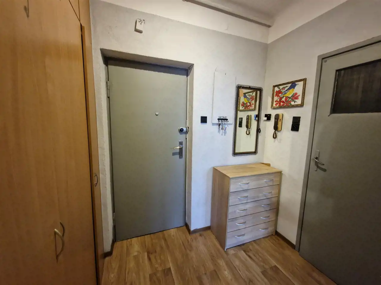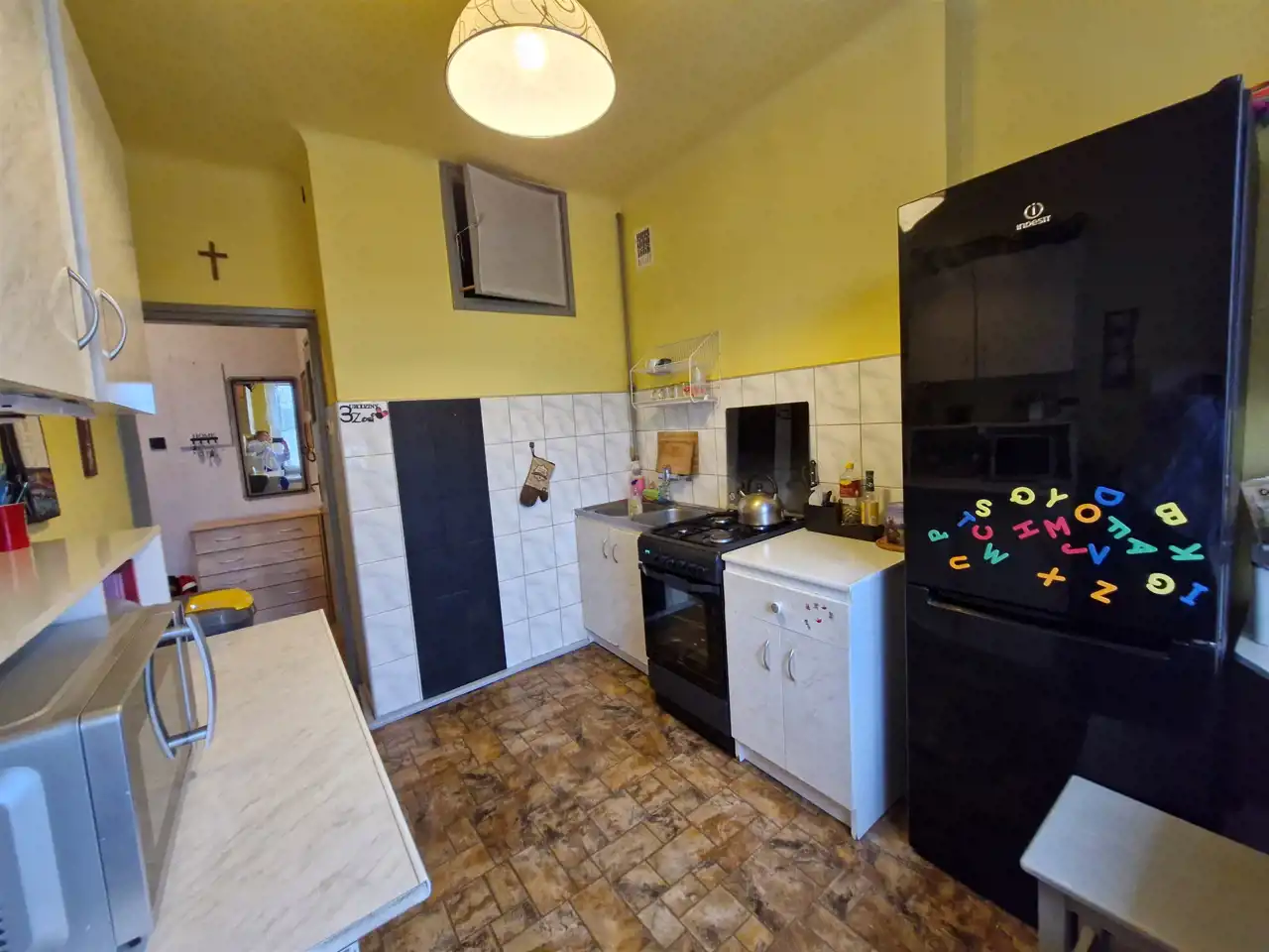 Rozkład mieszkania pozwala na wykonanie aneksu kuchennego w pokoju , a co za tym idzie w miejscu starej kuchni zyskujemy sypialnię.