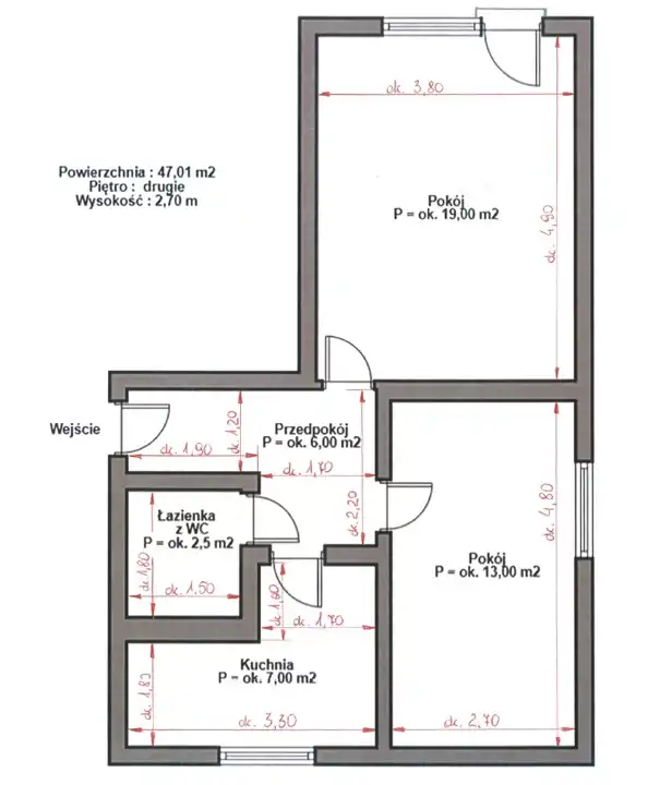- Charakterystyka mieszkania 47.01 m2, 2 pokoje