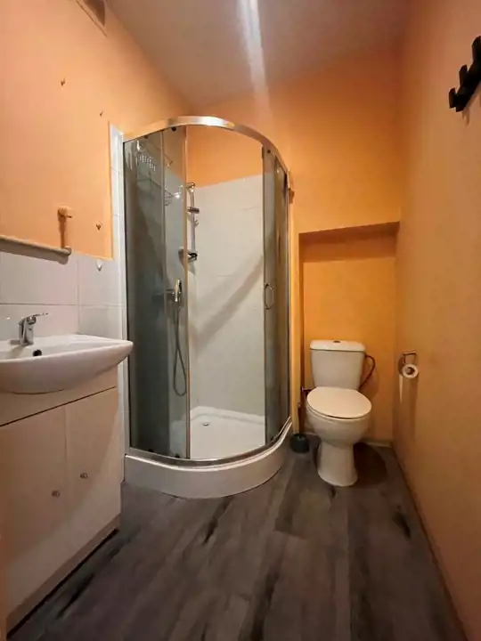 Łazienka razem z WC, wyposażona w kabinę prysznicową, umywalkę z szafką, pralkę, sedes. Ciepła woda miejska. Możliwość dodatkowego umeblowania. Mieszkanie ciepłe, położone w idealnej lokalizacji.