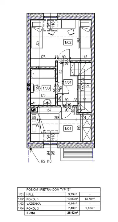 Pokój - 7,4 m2 (9,4 m2 powierzchni całkowitej)
