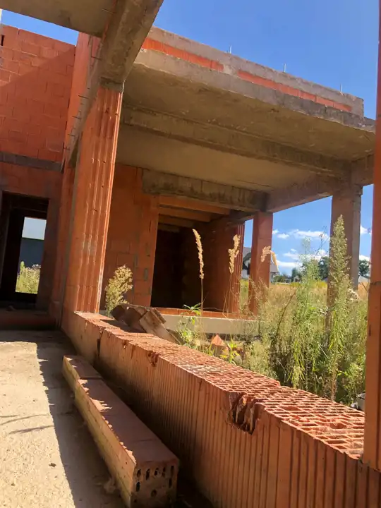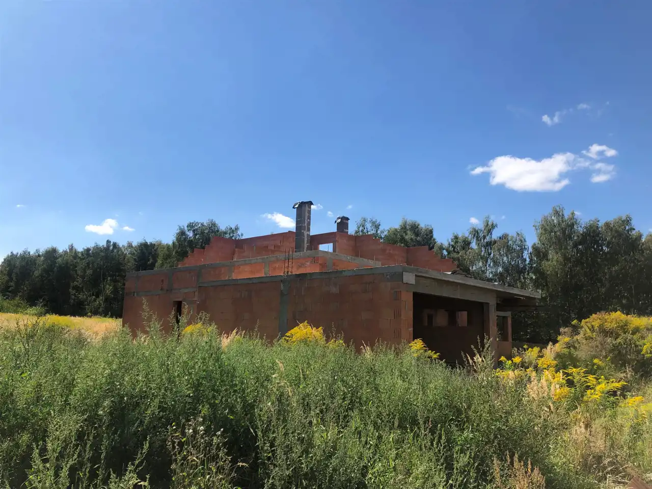Teren, na którym rozpoczęto budowę domu jednorodzinnego wolnostojącego, nie podpiwniczonego, dwukondygnacyjnego : na który składają się parter i poddasze użytkowe o pow. zabudowy 246,00 m2, powierzchni użytkowej 252,04 m2 w tym garaż dwustanowiskowy o pow.34,80 m2- stan zawansowania robót( płyta, ściany parteru wykonane z pustaka ceramicznego typu Porotherm, strop betonowy nad parterem oraz wyprowadzone są ściany zewnętrzne poddasza, kominy) . Dojazd do nieruchomości poprzez drogi gruntowe z ulicy Zielnej oraz Reymonta.