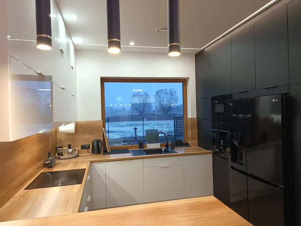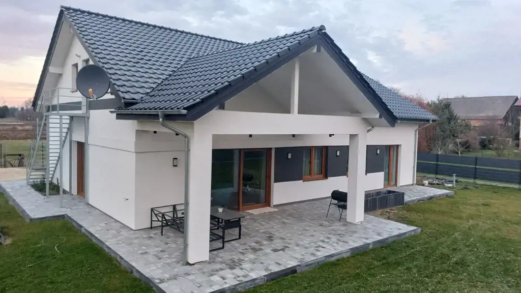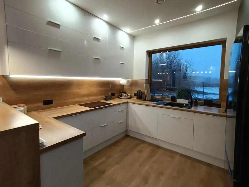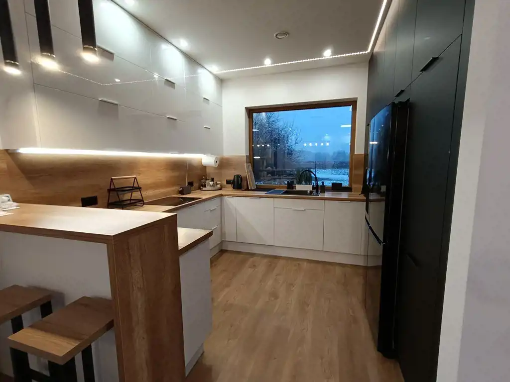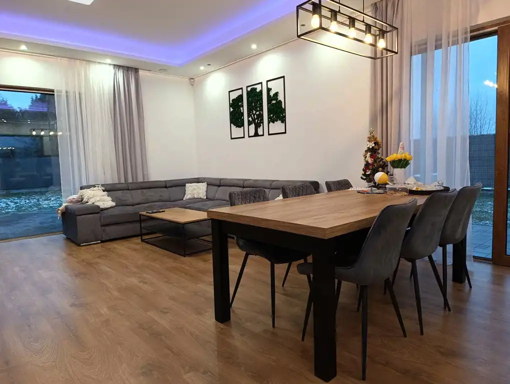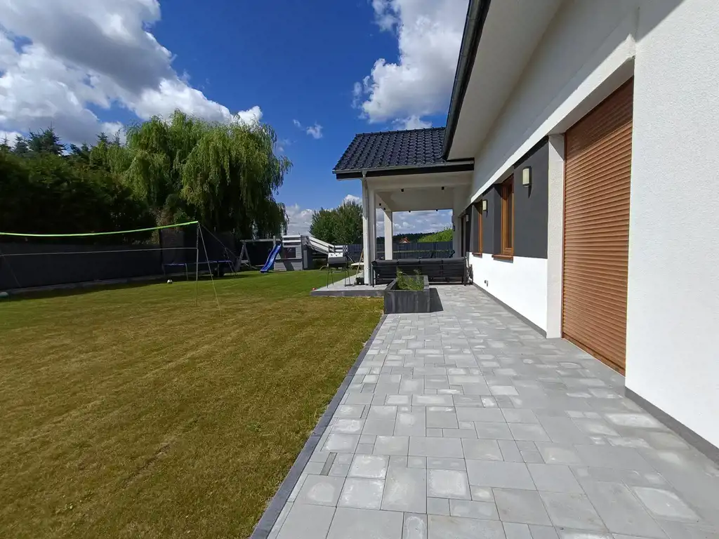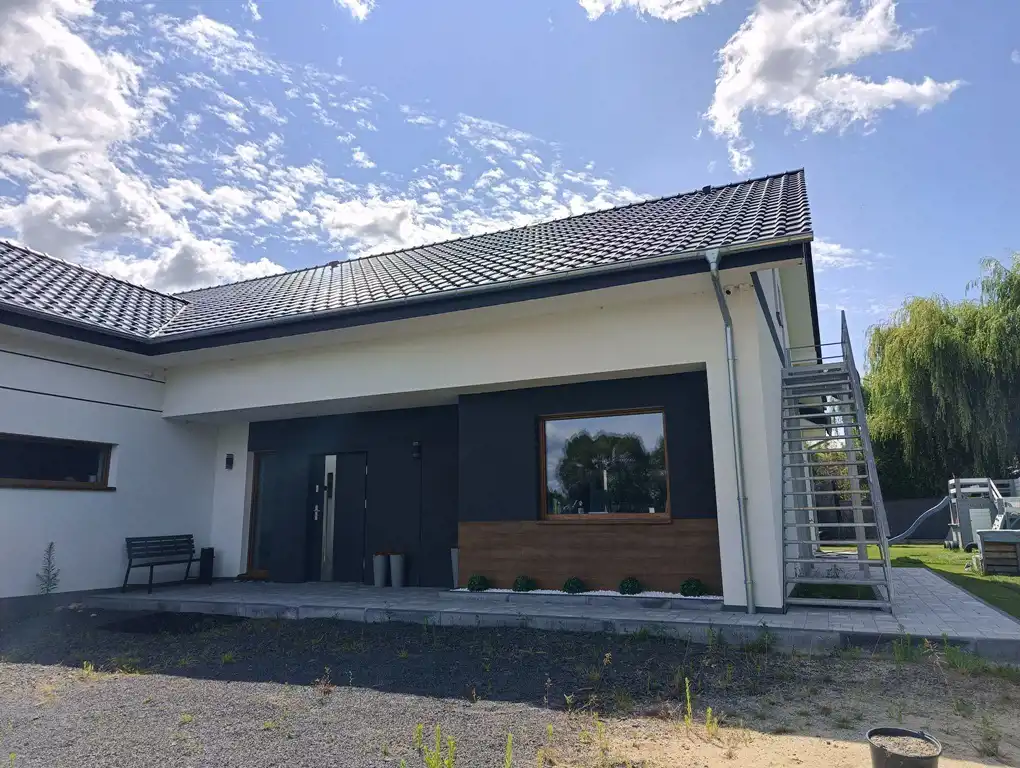 Do sprzedania nowoczesny, przestronny, gotowy do zamieszkania dom zlokalizowany w bliskiej odległości od Zgorzelca. Wolnostojący budynek parterowy o powierzchni 162,83 m2 wybudowany został pod koniec 2021 roku według projektu "Parterowy 3" z drobnymi modyfikacjami (podniesienie ścianki kolankowej na poddaszu, powiększenie łazienki). Budynek wybudowany z gazobetonu na solidnych, grubych fundamentach. Do ocieplenia stropów i elewacji użyto styropianu o najwyższej dostępnej klasie izolacji, ocieplenie dachu wykonano z piany PUR. Przestrzeń parteru wydzielają strefy: dzienna obejmująca kuchnię z jadalnią i spiżarnią, przestronny salon z wyjściem na taras i do ogrodu oraz pierwsza z łazienek z WC dla gości. Strefa nocna składa się z sypialni głównej z pojemną szafą w stałej zabudowie, 2 pokoi oraz łazienki z oknem wyposażonej w wannę. Wnętrza nowoczesne utrzymane w neutralnych barwach są dobrze doświetlone przez duże przeszklenia. Przemyślana kuchnia w stałej zabudowie wyposażona jest w sprzęty AGD marki Electrolux, lodówka LG. Płyta indukcyjna oraz okap są ze sobą połączone przez wifi. W kuchni szafka pod zlewem posiada system servo-drive. Wszystkie zawiasy firmy Blum. W szafce na wysokości blatu znajduje się ukryta, wysuwana półka na thermomix / ekspres do kawy. Elegancki przestronny salon o powierzchni ponad 30 m2 gotowy jest na przyjęcie nawet kilkunastu gości. Dodatkowo w bryle budynku znajduje się dwustanowiskowy garaż oraz pomieszczenie gospodarcze. Istnieje również możliwość zaadaptowania dużego poddasza z oddzielnym wejściem z zewnątrz na cele mieszkalne lub na działalność gospodarczą. Centralne ogrzewanie domu (w całości podłogowe-parter i poddasze) zasilane za pomocą nowoczesnej pompy ciepła Nibe o mocy 12kw. Rekuperacja Orcon, rozprowadzona w całym domu, włącznie z poddaszem. Okna trzyszybowe PCV posiadają zewnętrzne rolety wyposażone w sterowniki marki Supla, dające możliwość zaprogramowania harmonogramu oraz sterowania z aplikacji. Dom wyposażony jest w nowoczesny system monitoringu z alarmem firmy Satel z czujnikami Boscha (sterowany również z telefonu). Inteligentny system oświetlenia wnętrz, oświetlenia zewnętrznego oraz sterowania bramą wjazdową. Powierzchnia działki wynosi 1266 m2. Dom doskonale nadaje się dla osób ceniących przestrzeń i wygodę, lub po zagospodarowaniu poddasza - dla dużej lub 2,3 pokoleniowej rodziny, a także dla chcących prowadzić w miejscu zamieszkania własną działalność gospodarczą. Nieruchomości tego typu stanowią rzadkość na lokalnym rynku.