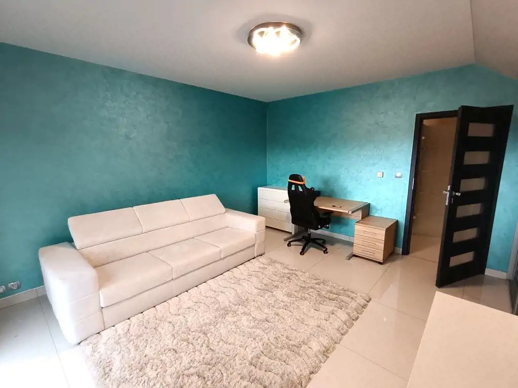 Do sprzedania nowoczesny, gotowy do zamieszkania dom zlokalizowany w odległości 7 km od centrum Zgorzelca, w Pokrzywniku. Dom w zabudowie bliźniaczej o powierzchni około 190 m2 wybudowany został pod koniec 2010 roku wg. indywidualnego projektu. Przestrzeń parteru stanowi przestronny salon o powierzchni 52 m2 z aneksem kuchennym, hol, pierwsza z łazienek wyposażona w natrysk, wiatrołap. Piętro to dwie przestronne sypialnie z garderobami oraz druga łazienka wyposażona w wannę. Dodatkowo w bryle budynku znajduje się garaż o powierzchni 24 m2 oraz pomieszczenie gospodarcze. Nowoczesne wnętrza są dobrze doświetlone przez duże przeszklenia zapraszające do środka zieleń ogrodu. Okna posiadają zewnętrzne elektryczne rolety. Na podłogach we wszystkich pomieszczeniach w domu ułożono wielkoformatowe płytki. Przemyślana kuchnia w stałej zabudowie wyposażona jest w wysokiej klasy sprzęty AGD wraz z wbudowanym ekspresem do kawy. Centralne ogrzewanie domu (w całości podłogowe) zasilane za pomocą pieca na pelet. Dom okala zadbany ogród z wypielęgnowanym trawnikiem, ozdobnymi nasadzeniami i oświetleniem. Powierzchnia działki wynosi 819 m2. Całość ogrodzona. W bezpośrednim sąsiedztwie znajdują się zabudowania jednorodzinne. Nieruchomość w wysokim standardzie, nie wymagająca wkładu. W cenie nieruchomości kupujący otrzymuje kompletne wyposażenie wraz z umeblowaniem i sprzętami. W cenie nieruchomości sąsiednia działka o powierzchni 508 m2 z możliwością zabudowy lub mogąca stanowić dodatkowy parking.