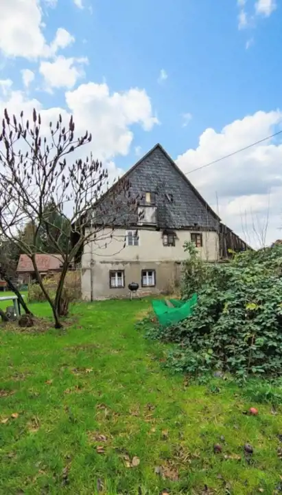 Pierwsza działka o pow. 1647 m2 zabudowana jest budynkiem mieszkalnym z częścią gospodarczą oraz budynkiem niemieszkalnym. Powierzchnia zabudowy głównego budynku wynosi ok. 190 m2.