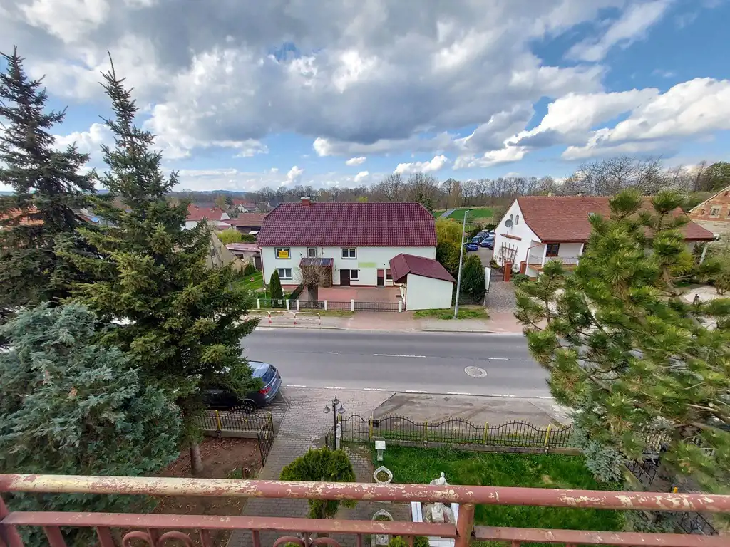 Do sprzedania nieruchomość użytkowo-mieszkalna położona na rozległej działce o powierzchni 2456m2. Posesja położona jest bezpośrednio przy drodze asfaltowej, około 450 m od przejścia granicznego Radomierzyce – Hagenwerder. Działka zabudowana jest budynkiem mieszkalno-usługowym o powierzchni 185,25 m2. Część usługowa - parter budynku obejmuje powierzchnię 140,50 m2. Dotychczas w pomieszczeniach na parterze funkcjonowało przedszkole. Część mieszkalna - piętro o powierzchni 44,75 m2 stanowi 3 pokoje, przestronną kuchnię, łazienkę z oknem oraz hol z komunikacją. Powierzchnie zostały wyliczone z uwzględnieniem redukcji z uwagi na wysokość niektórych pomieszczeń poniżej 2,20 m. Dodatkową powierzchnię stanowi poddasze z możliwością adaptacji na cele mieszkalne. Centralne ogrzewanie zasilane za pomocą pieca z podajnikiem na ekogroszek, stolarka okienna wymieniona na PCV, w budynku wymienione pokrycie dachowe. Na posesji znajdują się budynki gospodarcze, część przed budynkiem wyłożona kostką betonową. Nieruchomość doskonale nadaje się na prowadzenie działalności usługowej lub handlowej w miejscu zamieszkania.