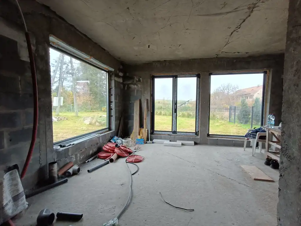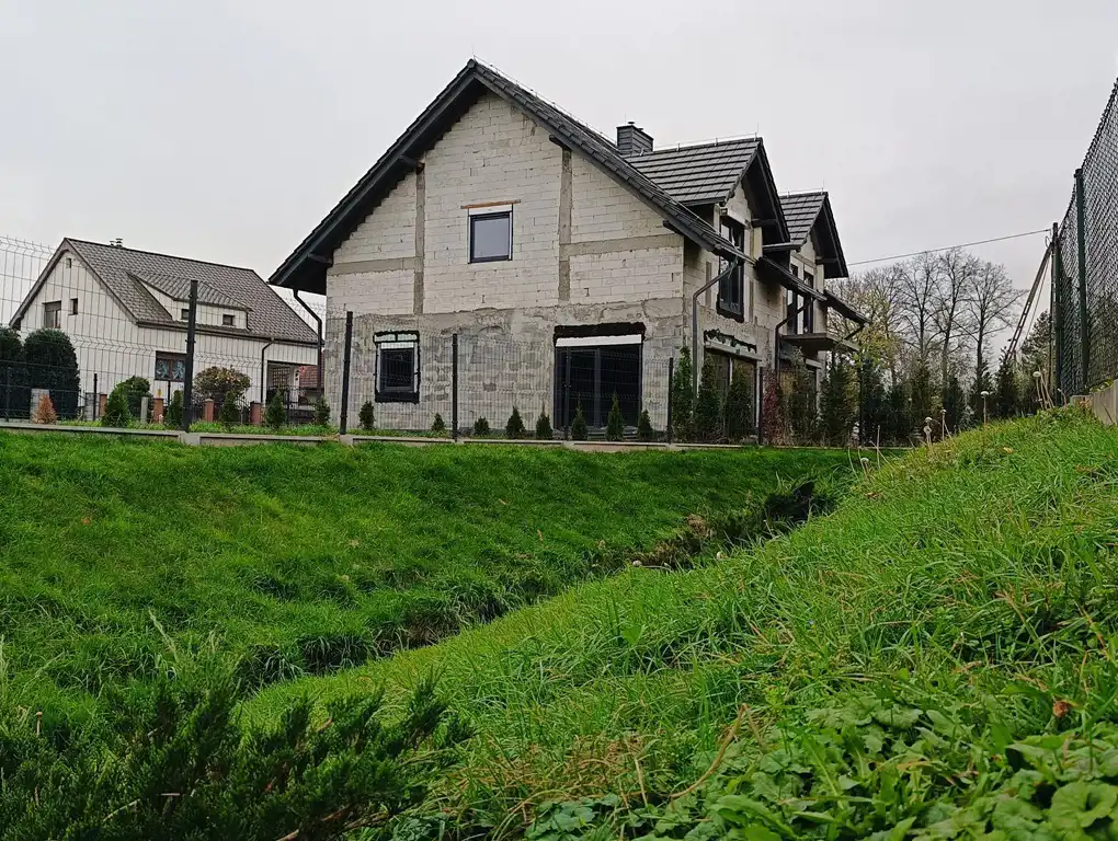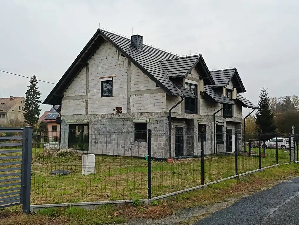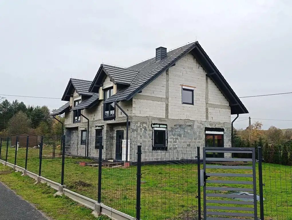 Do sprzedania nieruchomość położona w Ręczynie (gmina Zgorzelec) stanowiąca działkę o powierzchni 1989 m2 z rozpoczętą budową budynku mieszkalnego dwulokalowego. Każdy z lokali o powierzchni około 104 m2. Na powierzchnię lokalu numer 1 (lewa strona budynku) składa się na parterze: salon z aneksem kuchennym, łazienka, pokój, pomieszczenie gospodarcze pod schodami, na piętrze 3 sypialnie oraz druga z łazienek. Powierzchnia lokalu numer 2 (prawa strona budynku) stanowi na parterze salon z aneksem kuchennym, pomieszczenie gospodarcze pod schodami, pokój, łazienka oraz na piętrze dwie duże sypialnie w tym jedna z garderobą i druga z łazienek. Zaawansowanie prac do stan surowy zamknięty. W lokalach rozprowadzono instalacje: wod.-kan., z odprowadzeniem do przydomowej oczyszczalni ścieków, elektryczną oraz rekuperacji w lokalu numer 2. Trzyszybowe okna w budynku posiadają elektryczne rolety zewnętrzne. Posesja ogrodzona z dwoma bramami wjazdowymi i furtkami. Dodatkowo na części działki do wyłącznego użytku lokalu numer 1 posadowiono budynek garażowy. Dojazd do posesji nową asfaltową drogą gminną. Lokalizacja: 3 km od Zbiornika Niedów, 4 km od przejścia granicznego w Radomierzycach, 8 km jezioro Berzdorfer See, 2 km od przejścia w Spytkowie, w odległości 50 km od Świeradów Zdrój doskonałego miejsca dla wycieczek w Góry Izerskie. Nieruchomość daje możliwość do zamieszkania przez dużą rodzinę lub dwie lub zamieszkania w jednym lokalu i przeznaczenie drugiego na wynajem.