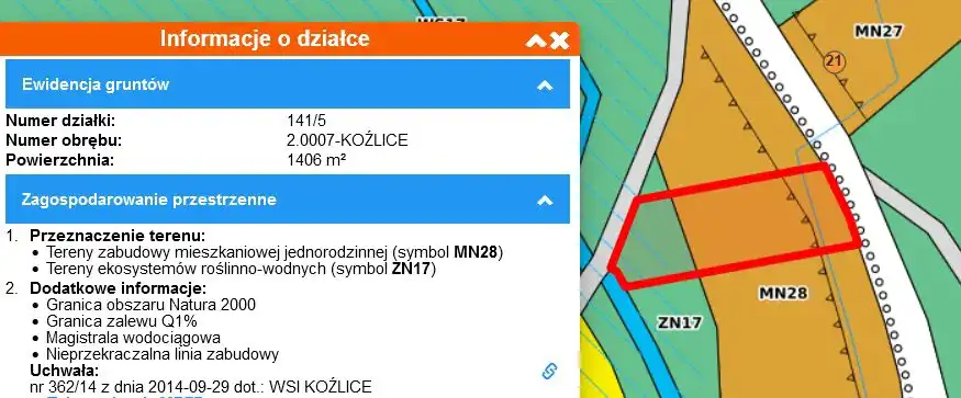Nieruchomości położone we wsi Koźlice w odległości ok. 10 km od Zgorzelca i ok. 3,4 km od drogi wojewódzkiej 352 łączącej to miasto z Bogatynią i Zawidowem . Gwarantuje to szybki i wygodny dojazd do tych miejscowości. Wszystkie działki przylegają bezpośrednio do powiatowej, asfaltowej drogi łączącej m. innymi Koźlice z Osiekiem Łużyckim. Teren płaski, kształt regularny. W pobliżu lasek, malowniczo płynąca Nysa (jednak teren nie jest zalewany). Wzdłuż tej granicznej rzeki ciągnie się ścieżka rowerowa od Radomierzyc do Zgorzelca. Daje to możliwość dodatkowej komunikacji z tymi miejscowościami. Sieci energetyczna i wodociągowa przebiegają w pobliżu. Teren opasają stare rowy odwadniające. Zgodnie z miejscowym planem zagospodarowania przestrzennego działki oznaczone są symbolem MN 28 - tereny zabudowy mieszkaniowej jednorodzinnej oraz ZN 17 - tereny ekosystemów roślinno wodnych. Cena wynosi 110 zł / 1 m kw działki.