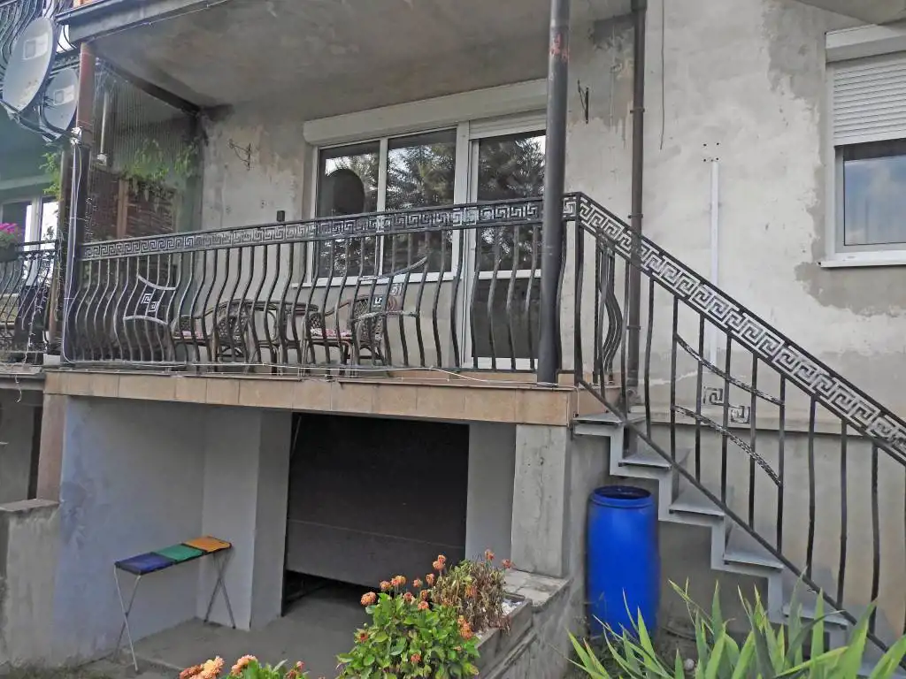 Nieruchomość znajduje się w 2 lokalowym budynku mieszkalnym. Przedmiotem sprzedaży jest lokal nr 1, w którego skład wchodzi: położone na wysokim parterze 3 pokojowe mieszkanie o pow. 57,4 m kw, znajdujące się na poddaszu mieszkanie 1 pokojowe ( o pow. 18,8 m kw – po odliczeniu skosów, natomiast po obrysie podłogi ok. 30,0 m kw), garaż o pow. 29,9 m kw oraz 2 pomieszczenia w piwnicy o łącznej pow. 15,0 m kw.