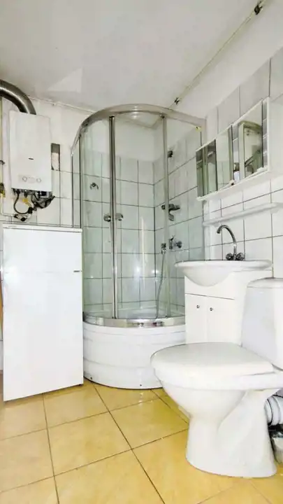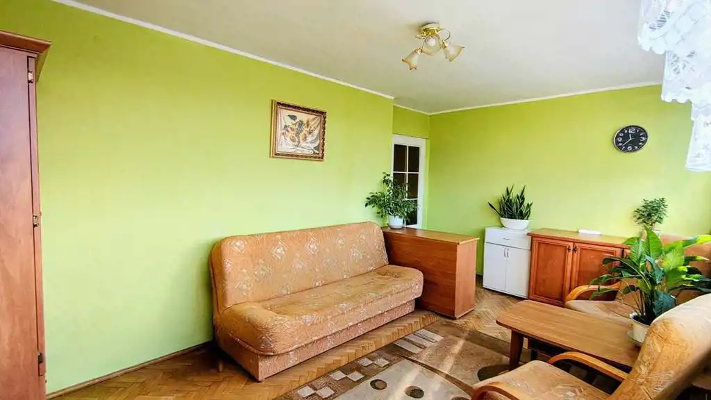 Centralne ogrzewanie zasilane z sieci miejskiej, ciepła woda z kilkuletniego podgrzewacza gazowego. Stolarka okienna kilka lat temu została wymieniona na PCV. Na podłodze w pokoju parkiet.