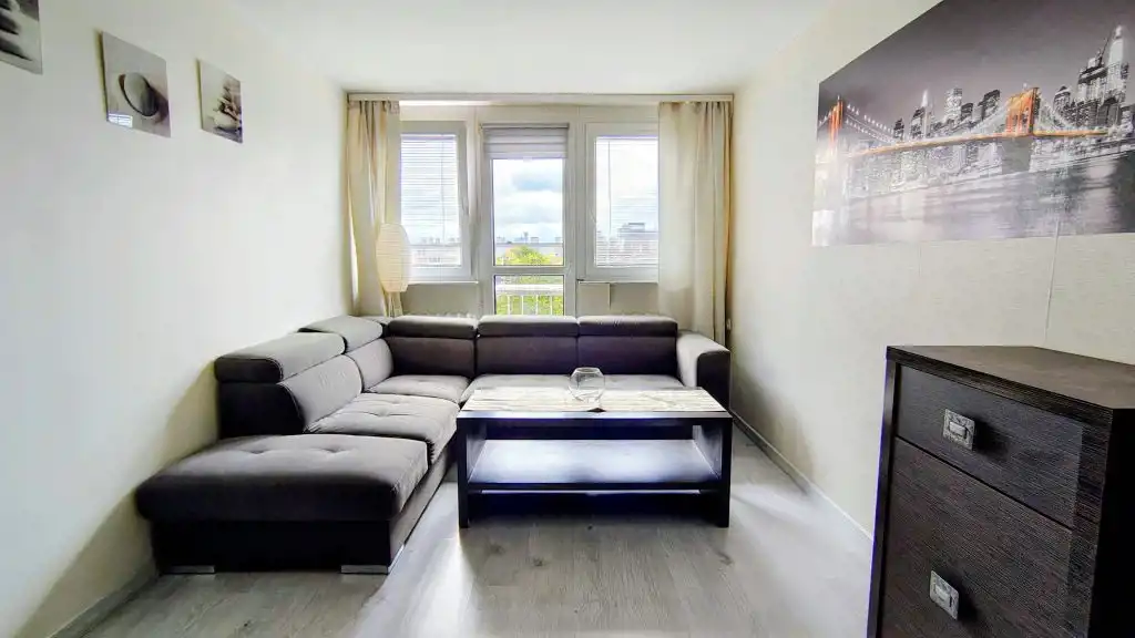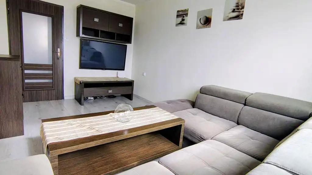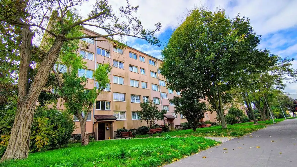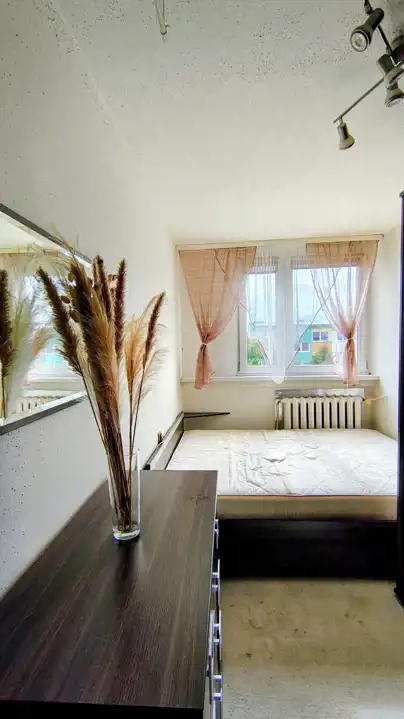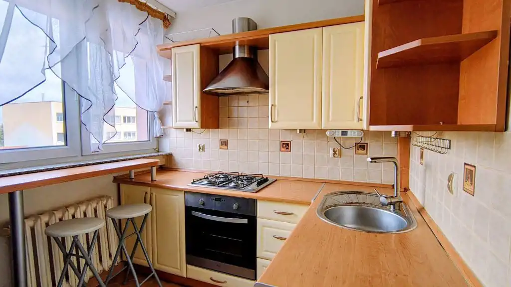 Mieszkanie rozkładowe o powierzchni 47,90 m2, która obejmuje słoneczny pokój dzienny, 2 sypialnie (w tym jedną z bardzo pojemną szafą), ustawną kuchnię, przedpokój oraz łazienkę z WC wyposażoną w prysznic. Dodatkowo do mieszkania przynależy piwnica o powierzchni 5,2 m2. Centralne ogrzewanie zasilane z sieci miejskiej, ciepła woda – junkers (nowy).
