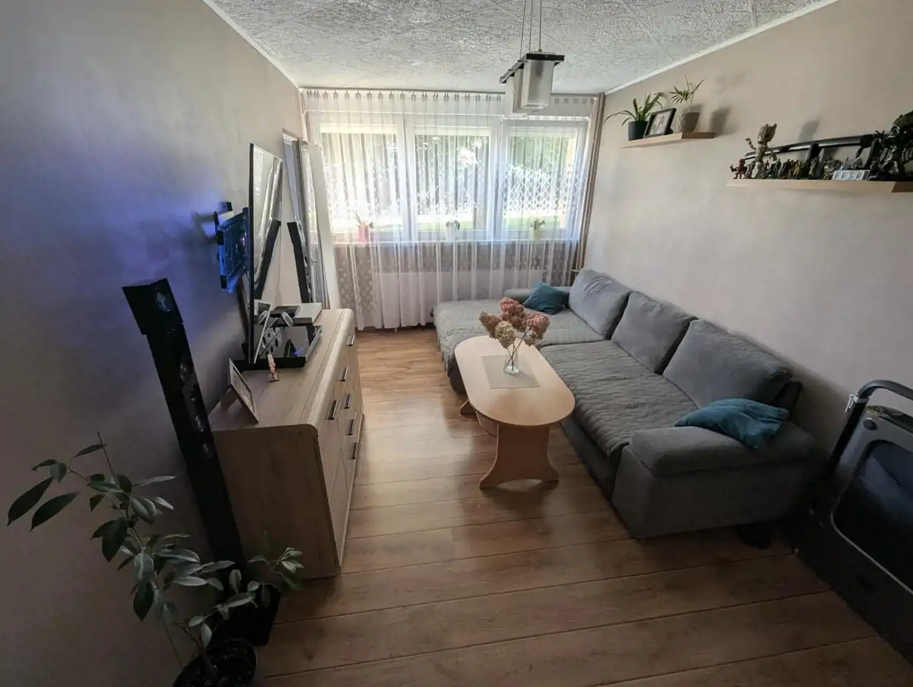 Posiadamy lokal mieszkalny składający się z 3 pokoi ( salonu z wyjściem na balkon), kuchni, osobnej łazienki i przedpokoju, który położony na wysokim parterze. Jego powierzchnia to 48,40 m2, do lokalu przynależy piwnica o pow.3,8 m2. Standard wyposażenia lokalu dobry, w lokalu zostały wymienione instalacje elektryczne, ściany - gładzie na siatce, pomalowane w pastelowych kolorach, podłogi wyłożone panelami oraz kaflami, stolarka okienna PCV z roletami zewnętrznymi opuszczanymi elektrycznie, drzwi z mdf, grzejniki żeliwne z regulacją, w łazience wanna , okładziny ścian - płytki ceramiczne. W kuchni meble ze sprzętem AGD ( piekarnik gazowy, wolnostojący). W przedpokoju pojemna szafa. Mieszkanie dwustronne, jednopoziomowe, wysoki parter.