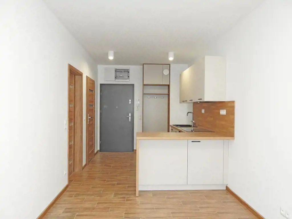 Oferujemy do kupienia nieduże, atrakcyjne, 2 pokojowe mieszkanie zlokalizowane na nowo powstającym osiedlu Nova Północ w Zgorzelcu przy ul. Lubańskiej. Lokal o pow. 38,39 m2 położony na 2 piętrze 4- piętrowego nowoczesnego budynku z windą. Blok oddany do użytku w 2024r. Lokal do tej pory nie zamieszkany, gotowy do wprowadzenia. Składa się z salonu z aneksem kuchennym wyposażonym w elegancką kuchnię w stałej zabudowie wraz ze sprzętem AGD oraz osobnej sypialni i sporej łazienki z prysznicem i pralką. Do umeblowania pozostaje sypialnia i część pokoju dziennego.