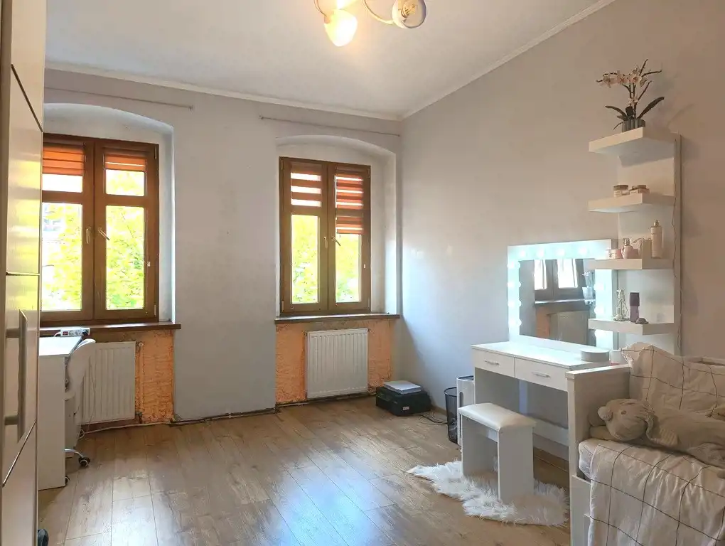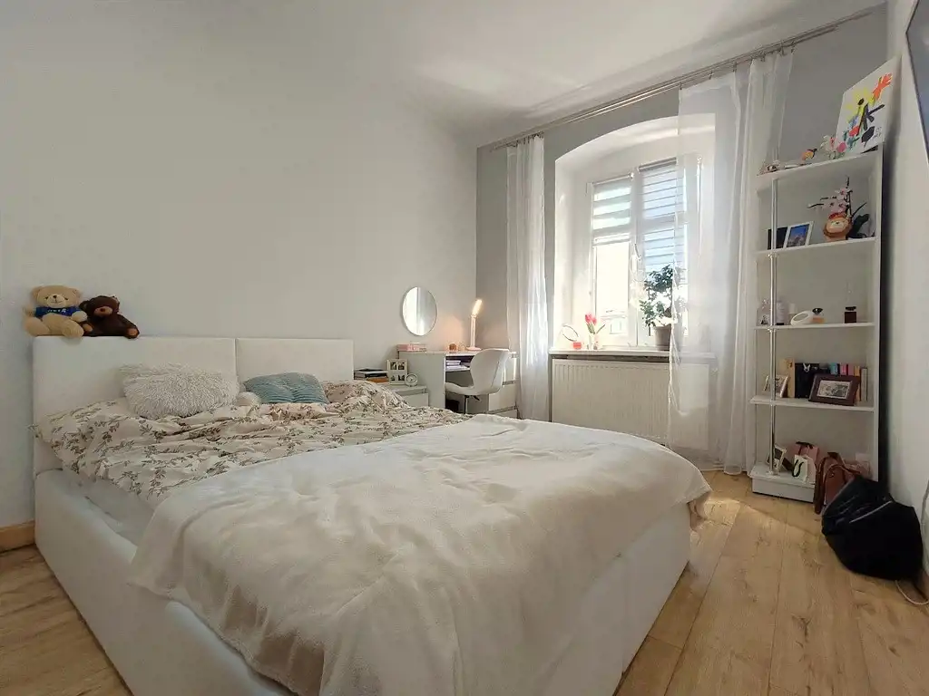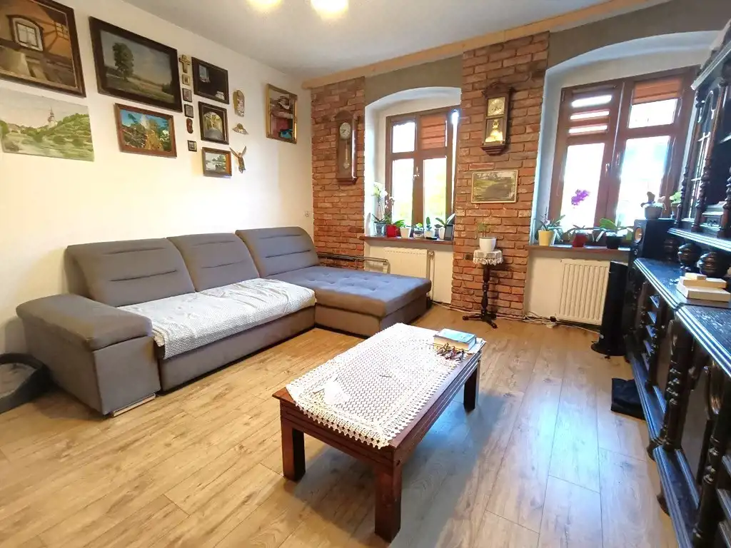 Do sprzedania wyjątkowe mieszkanie zlokalizowane w samym centrum Zgorzelca. Lokal położony jest na III piętrze odrestaurowanej kamienicy przy ulicy Armii Krajowej. Powierzchnia mieszkania wynosi 73,28 m2 i obejmuje przestronny pokój dzienny, 2 sypialnie, łazienkę z WC wyposażoną w prysznic, kuchnię oraz przedpokój wraz z wydzieloną garderobą. Do mieszkania przynależą pomieszczenia przynależne - piwnica i komórka na półpiętrze. Dodatkowo właściciele korzystają z dużej części strychu. Lokal zadbany, gustownie urządzony. Stolarka okienna 3-szybowa PCV, nowa instalacja wodno-kanalizacyjna i elektryczna. Kamienica zarządzana przez wspólnotę mieszkaniową. Budynek ma wymienione pokrycie dachowe, wyremontowaną elewację oraz klatkę schodową. Miesięczne opłaty stałe - funduszu remontowego i kosztów zarządu to około 350 zł. Lokalizacja – w bliskiej odległości liczne punkty usługowo-handlowe, restauracje, urzędy. Centralne ogrzewanie zasilane przez dwufunkcyjny piec gazowy, dodatkowo w salonie znajduje się piec tzw. "koza". Dostępne miejsca parkingowe przed budynkiem oraz w podwórku na tyłach budynku.