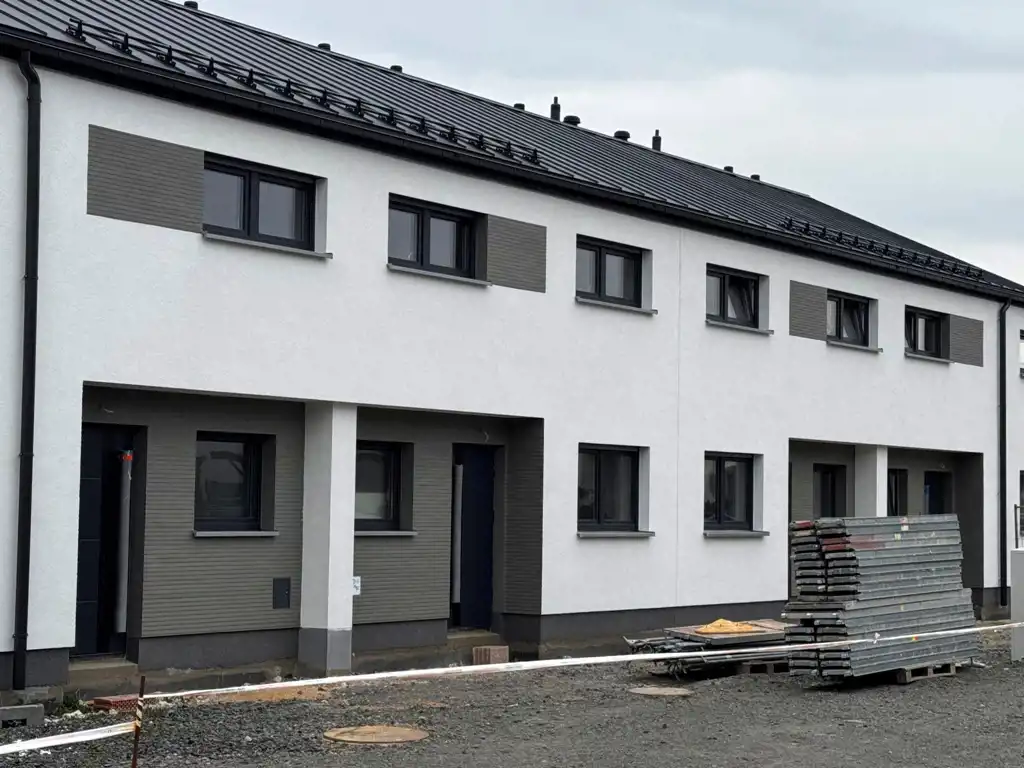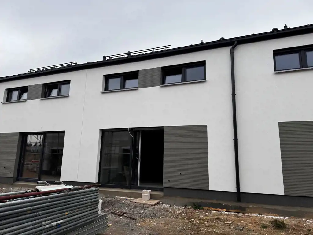 Stolarka okienna trzyszybowa z zewnętrznymi roletami sterowanymi elektrycznie we wszystkich oknach.