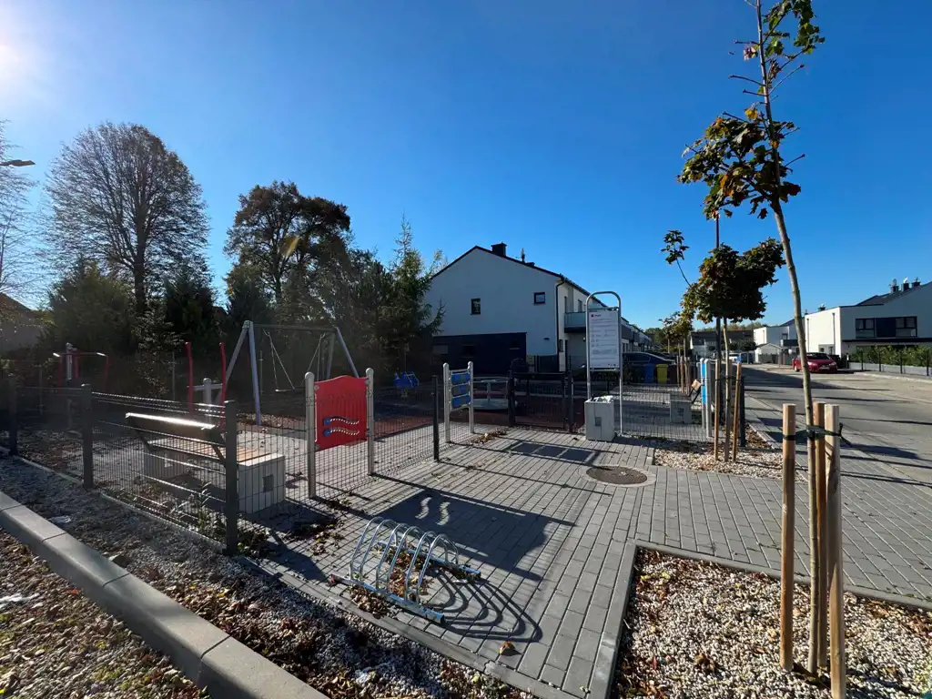 Na terenie inwestycji zaprojektowano również plac zabaw wykonany z bezpiecznych, certyfikowanych materiałów, stanowiący przestrzeń rekreacyjną dla najmłodszych mieszkańców.