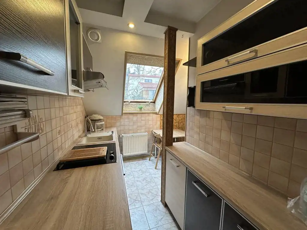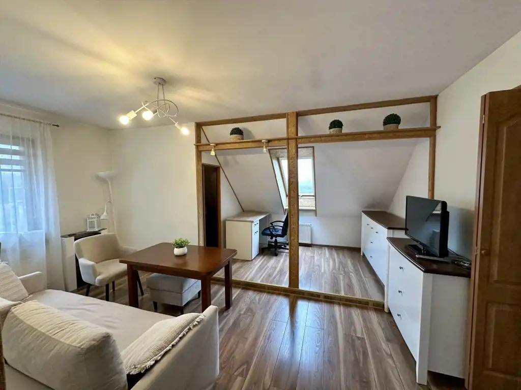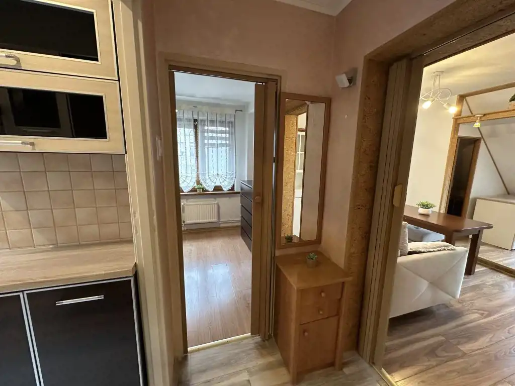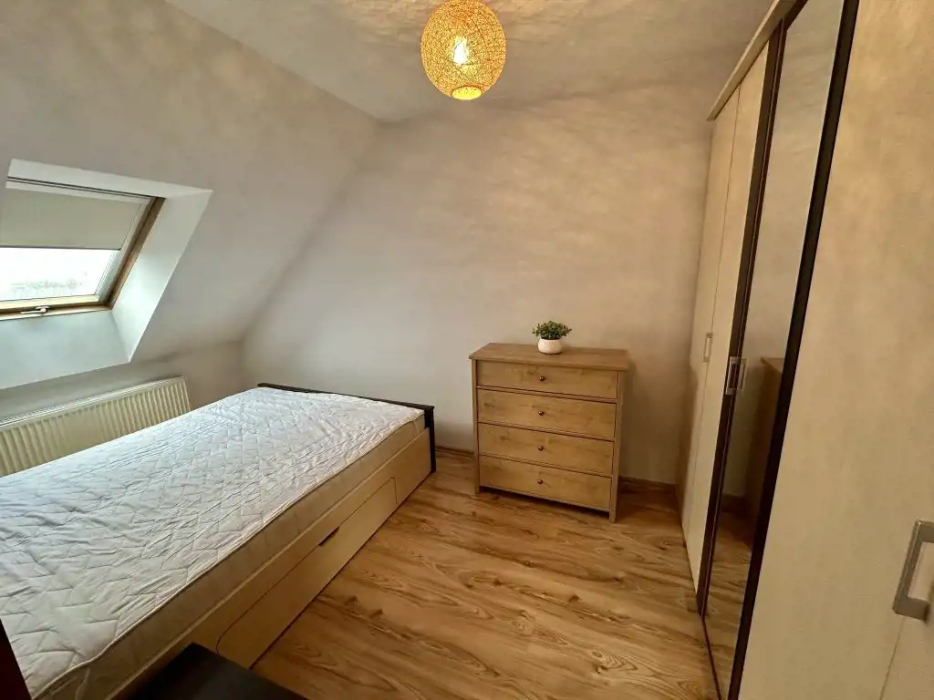 Klimatyczne na poddaszu, po remoncie, gustownie umeblowane i wyposażone mieszkanie 3 pokojowe o pow. 44 m2. Mieszkanie położone w kilkurodzinnym budynku w dzielnicy Ujazd w Zgorzelcu na II piętrze. Składa się z ustawnego pokoju dziennego z niewielką garderobą, 2 sypialni, osobnej kuchni ze spiżarką, łazienki z wc, przedpokoju. Mieszkanie z pełnym umeblowaniem, wyposażone w podstawowe sprzęty gospodarstwa domowego tj. pralka, lodówka, telewizor, posiada dużo miejsca do przechowywania różnych rzeczy. Ogrzewanie własne gazowe. Istnieje możliwość korzystania z piwnicy, a także z ogródka obok budynku. Dzielnica położona w spokojnej okolicy, oddalonej od centrum miasta o ok. 1,5 km. Przed budynkiem jest sporo miejsc do parkowania.