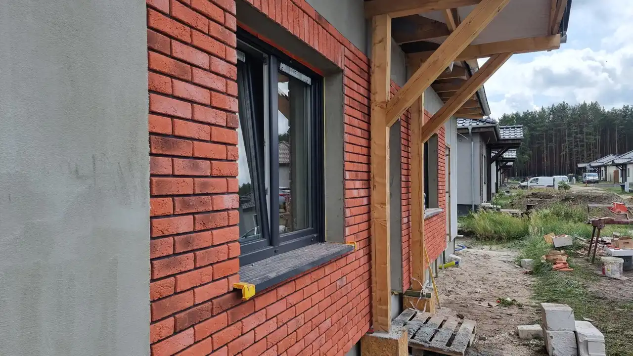 Standard Wykończenia : Konstrukcja oraz propozycje materiałowe zastosowane w projekcie: - drzwi tarasowe aluminiowe , przesuwne typu HS-z niskim progiem - francuskie szklane balkony - potrójne szyby - wysokiej klasy drzwi zewnętrzne, uzbrojenie terenu szambo eco, wodociągową, gazową i elektryczną - - centralne ogrzewanie gazowe podłogowe - ściany zewnętrzne Ytong-ocieplone 15cm styropian , -elewacja tynk strukturalny, od frontu imitacja deski - ściany między lokalami Silka -tynki wewnętrzne gipsowe maszynowe- bez szpachlowania - piec dwufunkcyjny marki viesmsnn - dachówka cementowa antracyt- - posadzki betonowe przygotowane do położenia parkietu, paneli itp.. - dodatkowe wygłuszenie ścian wewnętrznych .