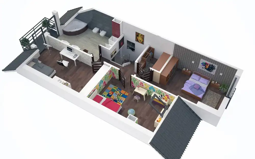 W ofercie sprzedaży dwukondygnacyjny lokal mieszkalny, 4-pokojowy oznaczony literą B o powierzchni 144,79 m2. Nieruchomość położona w dzielnicy Racula składa się na parterze z wiatrołapu, korytarza, WC, dużego salonu z aneksem kuchennym oraz garażu, natomiast na piętrze znajdują się 3 pokoje, łazienka z WC, garderoba oraz korytarz.