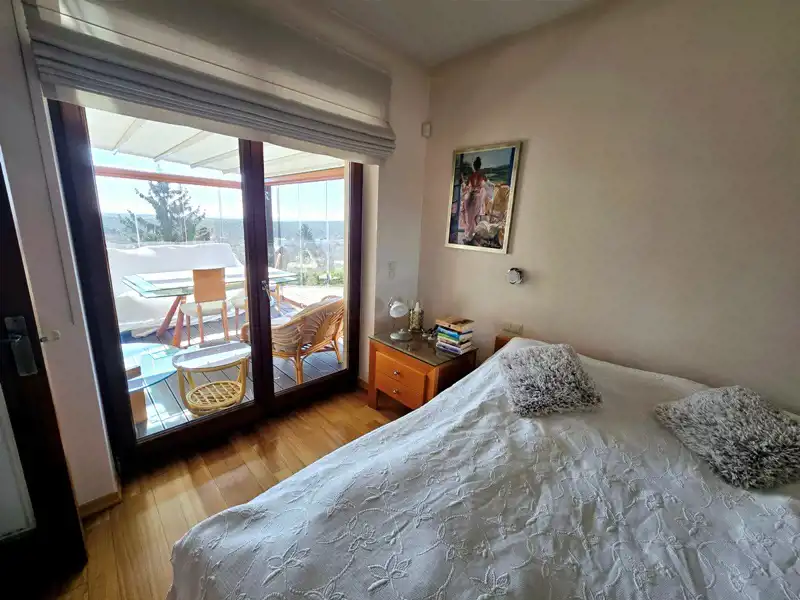 Wnętrze domu zostało zaprojektowane z myślą o komforcie i funkcjonalności. Przestronny, jasny salon z wyjściem na zadaszony taras stanowi serce domu. Taras pełni obecnie również funkcję ogrodu zimowego, tworząc idealną przestrzeń do relaksu o każdej porze roku. Do dyspozycji mieszkańców jest także funkcjonalna kuchnia ze spiżarnią, trzy komfortowe sypialnie oraz dwie łazienki, w tym prywatna łazienka przynależna do jednej z sypialni.