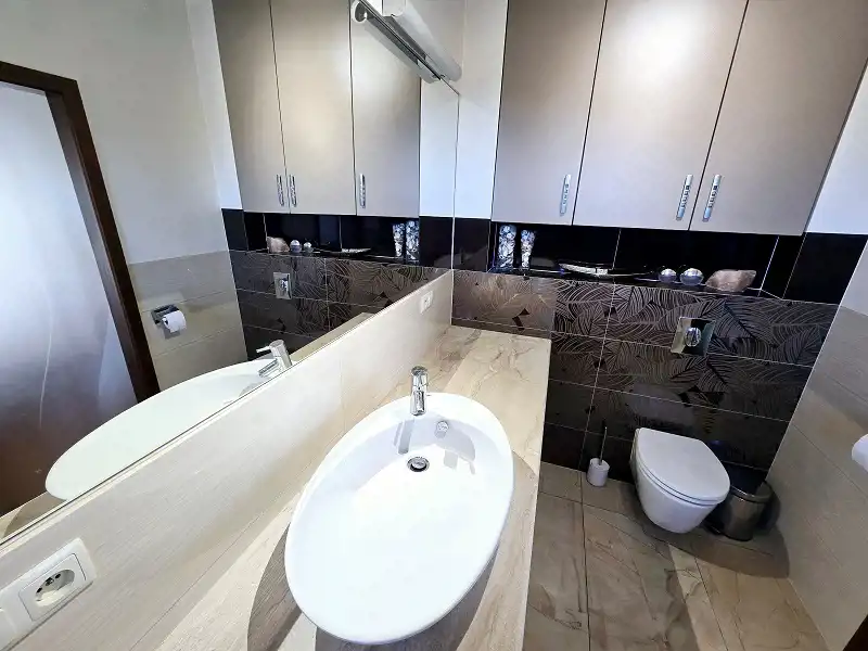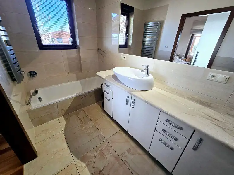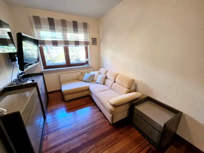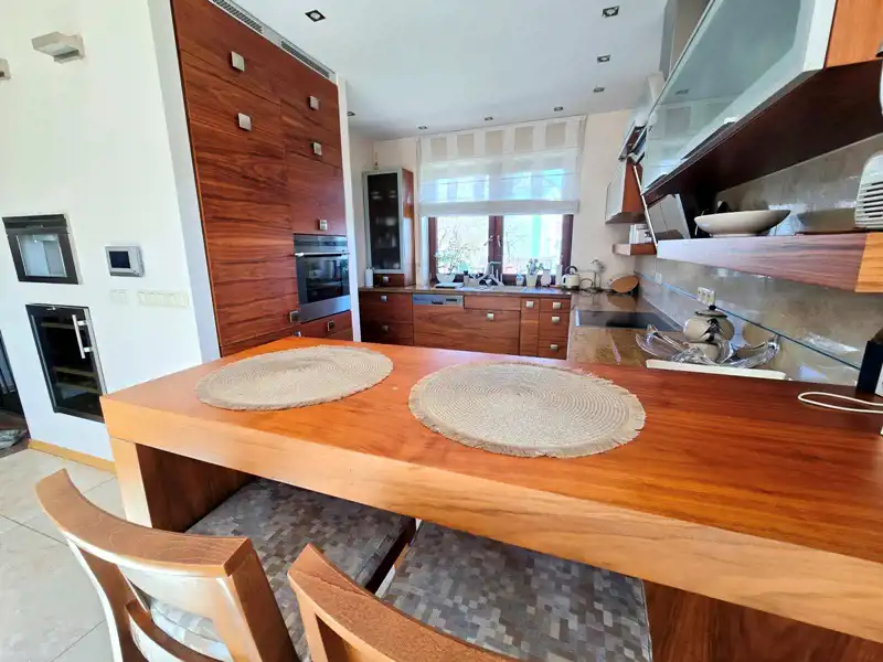 W całej nieruchomości zastosowano ogrzewanie podłogowe z piecem renomowanej marki Vaillant. Kuchnia wyposażona jest w sprzęt AGD marki Electrolux. Ogród posiada automatyczny system nawadniania, który pozwala utrzymać zieleń w doskonałej kondycji. Do dyspozycji najemców pozostaje garaż oraz dodatkowe miejsca postojowe na posesji i przed domem.
