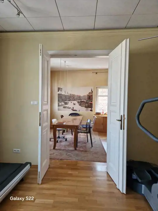 Aktualnie mieszkanie składa się dużej kuchni, przestronnego przedpokoju, 2 łazienek i z wc oraz 3 pokoi.