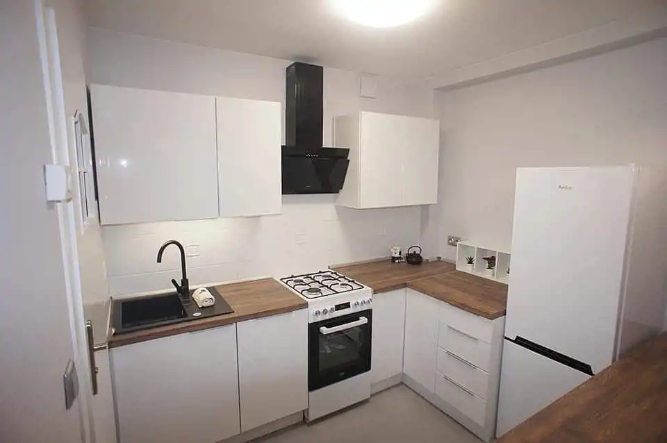 Mieszkanie nie wymaga nakładów finansowych, cenie mieszkania umeblowanie oraz wyposażenie widoczne na zdjęciach (BEZ MATERACA) m.in zabudowa kuchni wraz ze sprzętem AGD (lodówka, zmywarka, kuchenka gazowa z piekarnikiem, okap, pralka)