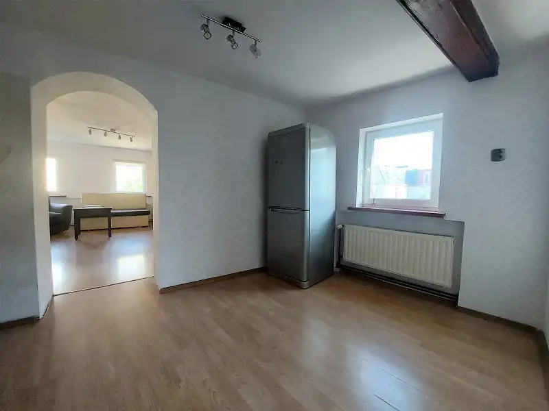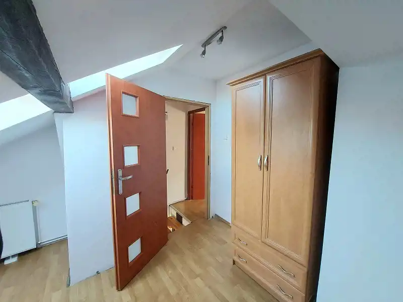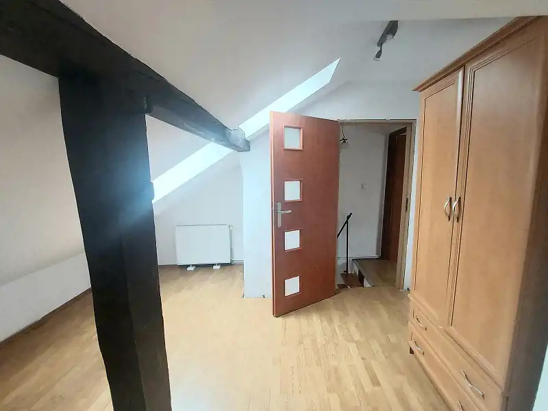 Nieruchomość na I poziomie (38,4 m2) składa się z salonu, jasnej oddzielnej kuchni z oknem, łazienki z WC oraz przedpokoju z garderobą. Na II poziomie (31,4 m2 po podłodze, 14,8 m2 użytkowe) znajdują się 2 sypialnie. Dodatkowo do mieszkania przynależy duża piwnica - idealna na przechowywanie.