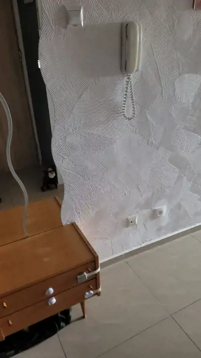 SYPIALNIA NR 1: na podłodze położona deska sosnowa, ściany gładzone i malowane.